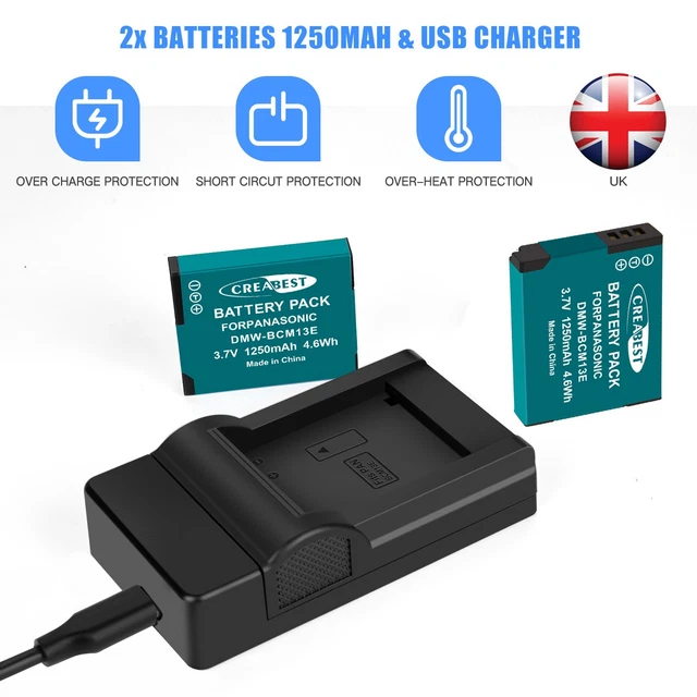 BATTERIE DE REMPLACEMENT pour DMW-BCM13, DMW-BCM13E, DMW-BCM13PP - Batterie haute performance de qualité supérieure. Achetez 2 x Dot.Foto DMW-BCM13, DMW-BCM13E Premium 3.6v / 1250mAh Batterie Rechargeable pour Panasonic Lumix DMC-FT5, FT6 / LZ40 / TZ37, TZ40, TZ41, TZ55, TZ56, TZ57, TZ58, TZ60, TZ61, TZ70, TZ71 / DC-FT7 Dot. Notre batterie est certifiée CE/FCC/RoHS et tous les produits sont strictement testés pendant la production, garantissant la sécurité dans des conditions normales d’utilisation Si vous avez des questions, n’hésitez pas à nous contacter ACHETEZ EN TOUTE CONFIANCE - support client professionnel 24 * 7 et service d’assistance technique à vie. Foto a été spécialement conçue pour remplacer la batterie d'origine. Batterie + Chargeur (USB/Auto/Secteur) pour Panasonic DMW-BCM13 Foto est une sécurité système qui offre une protection contre les courts-circuits et empêche la batterie de surchauffer. Foto - Vente de batteries pour appareils photo et caméscopes depuis 2005., Cette batterie Dot. Intégré dans chaque batterie Dot. Cette batterie Duracell est une très bonne alternative pour la batterie Panasonic onéreuse. Bénéficiez de la qualité et de la fiabilité de la marque Duracell Chargeur Piles Batterie + Chargeur (USB/Auto/Secteur) Pour Panasonic DMW-BCM13 / Lumix DMC- FT5, TS5, TZ37, TZ40, TZ60, TZ70, TZ71, ZS30, ZS40.. - V. Liste Batterie DMW-BCM13 Remplacement Il fonctionnera de la même manière que la batterie d'origine, renvoyant l'autonomie restante de la batterie à l'appareil (si l'appareil prend en charge cette fonction).