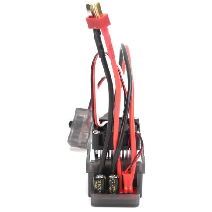 Contrôleur de vitesse de moteur brossé RC ESC RC bidirectionnel 2s-3s Lipo 5A RC contrôleur bidirectionnel pour bateaux modèles RC Mode réglable : Mixte ou Indépendant ; Protection contre la surchauffe : ESC > 130°C ; Signal d'entrée : ppm ; Taille du produit Bonne dissipation thermique : le RC Le contrôleur bidirectionnel est léger, petit, possède un module de condensateur intégré, une bonne dissipation thermique, une forte capacité à contre-courant et une forte capacité anti-interférence. PRATIQUE: Cet ESC brossé RC peut régler la rotation différentielle des deux moteurs ou contrôler les rotations avant et arrière des deux moteurs respectivement. FINE WORKMANSHIP: L'ESC brossé RC est composé de matériaux de qualité supérieure, d'une finition soignée, sûr et fiable, résistant aux éclaboussures et à la poussière, et Régulateur RC Bidirectionnel 5A 2S-3S Brosse Esc Bidirectionnelle Pour Voiture Et Bateau, Étanche, Haute ESC Pour Bateau Modèle Réduit Pratique : ce contrôleur RC brossé peut ajuster la rotation différentielle de les deux moteurs ou la rotation avant et arrière des deux moteurs. En mode de contrôle hybride, des chavirages différentiels à double moteur, des camions à benne basculante, des véhicules à chenilles, etc. peuvent être réalisés. PROTECTION CONTRE LA PERTE DE D'ACCÉLÉRATEUR: Le RC ESC a une protection contre la perte de d'accélérateur qui si le d'accélérateur est perdu pendant 1 seconde, l'ESC réduira progressivement la puissance de sortie, et si le est perdu pendant 1 seconde, l'alimentation sera coupée. Alomejor RC ESC RC Brushed Motor Speed Controller Bidirektionaler 2s-3s Lipo 5A RC Zwei-Wege-Regler für RC-Modellboote BONNE DISSIPATION DE LA CHALEUR: L'ESC bidirectionnel RC est léger, de petite taille, module de condensateur intégré, bonne dissipation de la chaleur, forte capacité anti-courant et forte capacité anti-interférence. Contrôle de moteur double] Cet ESC brossé rc permet de régler la rotation différentielle de deux moteurs ou de contrôler indépendamment les rotations avant et...