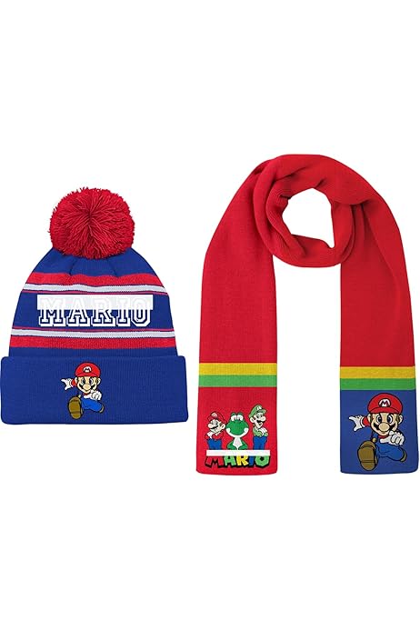 Accessoire Hiver Enfant Theme Super Mario Bonnet Mario Cheerful Mario 3-8 Ans Packs Bonnet Et écharpe Enfant Garçon Bonnet Avec Cache Oreilles Chaud Cache Cou Enfant Beige Bonnet Panda Gants Fille Achetez Cheerful Mario 3-8 Ans Packs Bonnet et écharpe Enfant Garçon Bonnet Avec Cache oreilles Chaud Cache cou Enfant Beige-B livraison gratuite retours gratuits selon éligibilité (voir cond Description Ce bonnet et écharpe Cheerful Mario, c'est le kiff pour les gosses de 3 à 8 ans ! Super chaud, avec cache-oreilles et cache-cou intégrés. En polaire douce, super confortable contre la peau. Parfait pour l'hiver, à l'école ou en playdate. Les motifs sont fun, et les couleurs vives. Lavable en machine, donc pratique pour les parents. Fini les rhumes et les écharpes qui tombent... Acrylique, Lavage en machine Set hiver rouge Its Mario pour enfants 54 cm - Chapeau et gants Super Mario