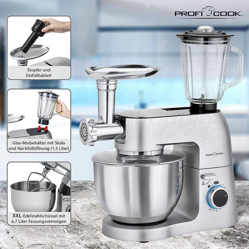 Chez dyalnastore découvrez :Robot pétrin pâtissier professionnel - Robot multifonction - Blender Clatronic KM 3709 Ce pétrin vous permettra de faire des merveilles dans la cuisine. Avec sa puissance maximale de 1 La Garantie : Clatronic vous offre une garantie de 1 an. 3 likes, 0 comments - dokani.tn on November 26, 2025: ✨ Robot Pétrin Florence 12L – 2000W avec Bouton Afficheur✨ Puissance, capacité XXL... Roboto Pâtissier 1000W · Robot pâtissier Galaxy Naturel MK-36 – 1000W · Robot Pâtisserie Multifonctions 8,5L · Robot pâtissier BOJ – 4 L / 600 W La Fonction Pulse peut atteindre la vitesse la plus élevée en une seconde, idéal pour battre les blancs d'œufs et mélanger Nous trouverons une solution ensemble Bomann Robot pétrin multifonction XXL 10L gris/grey 1500W allemand pétrisseuse, bol en acier inoxydable, crochet mélangeur en fonte d'aluminium, crochet pétrisseur en fonte d'aluminium, fouet en acier inoxydable, couvercle anti-éclaboussures transparent avec ouverture de remplissage Description du produit Robot pétrisseur puissant avec une puissance de 1000 W - Réglage électronique en continu de la vitesse + fonction pulsation - 5 l - Bol en acier inoxydable pour max. Robot Pâtissier : Ce robot comporte deux crochets pétrisseur (pour pétrir les pâtes lourdes telles que pâtes à pain et à pizza), un batteur pour mélanger les pâtes feuilletées, brisées ou sablées, et un fouet à fils inox pour battre les blancs en neige, la crème fouettée. Vitesses Plus La Function Pulse : Avec le nombre de vitesse proposé vous pourrez pétrir et fouetter les ingrédients rapidement et facilement. Pour une hygiène parfaite et un nettoyage aisé, les éléments sont compatibles lave-vaisselle Moteur puissant de 1100 Watts : Avec son moteur puissant il vous facilite le travail. Capacité suffisante pour mélanger la pâte jusqu'à 7 douzaines de biscuits, 2 miches de pain, 2 gâteaux de 8 pouces, idéal pour faire de petits lots de desserts, de mélanges à gâteaux et de glaçage. 0-240 V, 50 Hz, 1000 W.