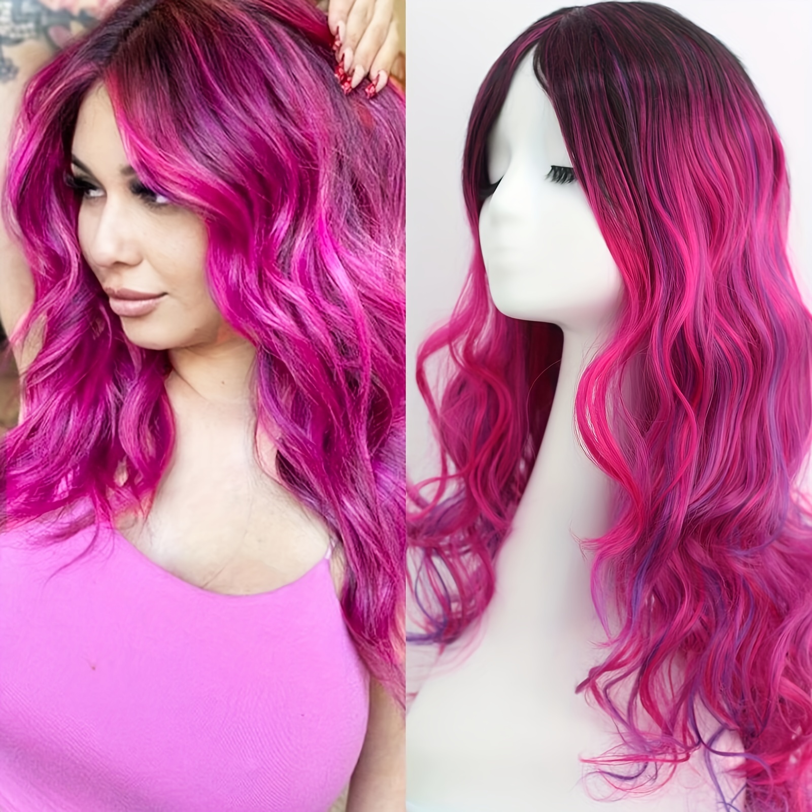 Acheter MERISIHAIR Perruque violette avec frange longue ondulée pour femme, perruque synthétique résistante à la chaleur 24 pouces Perruque Rumi Kpop Demon Hunter Longue Perruque Ondulée Violette Et Mèches Noires Perruque Kpop Perruque longue violet avec mouvement Perruques 70 cm / 28 Cosplay Perruque pour femme Longue, pleine, bouclée, grosse ondulée, résistante à la chaleur. Postiche glamour tendance avec bonnet de...