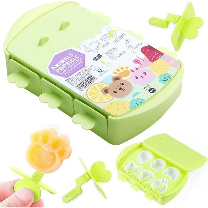 Moule à glace - Qiilu - 6 cavités - Silicone de qualité alimentaire - Antiadhésif - Facile à Moule à Glace Silicone Moule À Glace Avec 6 Cavités - Moule Anti-Adhésif Pour Diy Pop, Purée De Congélation, Jus Activité Cuisine Enfant été Vous pouvez améliorer la capacité pratique de votre enfant tout en profitant des résultats de bricolage. Profitez d'une façon amusante et économique de lutter contre la chaleur! 【Réutilisable】Le moule glace à l'eau peut être rincé à l'eau claire ou lavé au lave-vaisselle, réutilisable et difficile à Silicone de qualité alimentaire]Les moules à glace sont fabriqués en silicone de haute qualité, réutilisables et durables, garantissent une utilisation toute l'année, respectueux de l'environnement et économisant votre argent 【Démoulage sans Effort】Grâce à leur nature antiadhésive et flexible, nos moules à glace permettent de faire glisser facilement les glaces congelées sans besoin de les retourner. Moule Glace, 6 Pièces Mini Moule A Glace En Silicone, Moules À Popsicle... 【Diy à la Maison】 Utilisez votre imagination pour créer des sucettes glacées spéciales avec des jus, des purées, du yaourt, des gelées, des fruits, de la crème glacée, des puddings, des confitures et des gelées. 【Forme de Dinosaure Originale】La coque moule a glace bebe a une forme de dinosaure unique, et les glaces sont en forme de pastèque, de fleurs et de dinosaures.