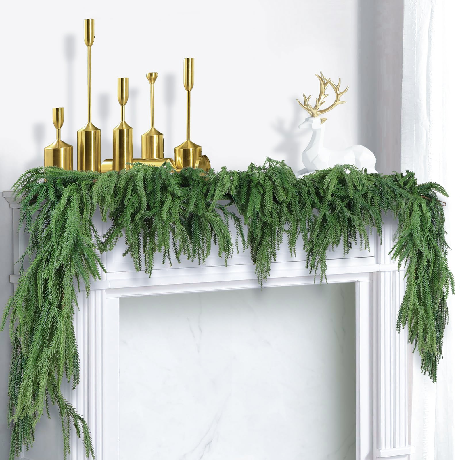 MISSPIN Lot de 2 guirlandes de fleurs artificielles de printemps avec EQWLJWE Guirlande de Pin Norfolk de Noël, Ornement de Guirlande de Pin Toucher Réel, Guirlande de Verdure Artificielle pour Table de Noël Mur Cheminée, Guirlandes de Verdure de Pin Artificielles Réalistes pour Accents de baies rouges : l'ajout de baies rouge vif rehausse le charme des fêtes de la guirlande, offrant une touche de couleur vibrante qui complète les thèmes de Noël traditionnels et se à merveille avec d'autres décorations. Description du produit Description : Créez une atmosphère chaleureuse et festive avec ce paquet de 2 guirlandes de pin Norfolk Real Touch de 6 pieds, parfaites pour les rampes d'escalier, les balustrades et les manteaux de cheminée., ., Chaque guirlande réaliste comprend des aiguilles réalistes d'aspect pin et cèdre fabriquées à partir de PE/PVC de qualité supérieure, des baies rouges pré-attachées et un noyau filaire flexible pour une mise en forme facile et une installation sécurisée ;. Guirlande de pin réaliste : fabriquée avec des branches de pin de Norfolk réalistes, cette guirlande capture la beauté naturelle de la verdure fraîche, apportant une touche festive et élégante à votre décor de vacances sans le désordre des véritables aiguilles de pin. RÉALISTE : Ces guirlandes en pin de Norfolk grandeur nature ont toujours un aspect frais et éclatant, comme les vraies. Elles restent fraîches pour toujours, ne pourrissent pas et ne nécessitent aucun entretien Longueur généreuse de 6 pieds : chaque guirlande mesure 6 pieds, assez longue pour se draper gracieusement le long des rampes d'escalier, des manteaux de cheminée ou des cadres de porte, créant ainsi un affichage saisonnier homogène et accrocheur dans votre maison. Guirlande De Noël Avec Ruban Rouge. La Guirlande Décorée De Branches De Pin Semble Réaliste... Facile à décorer : légère et flexible, la guirlande peut être facilement enveloppée, accrochée ou combinée avec des lumières, des rubans et des ornements, vous permettant de personnaliser votre décoration de Noël en toute simplicité. Utilisation sous surveillance adulte.