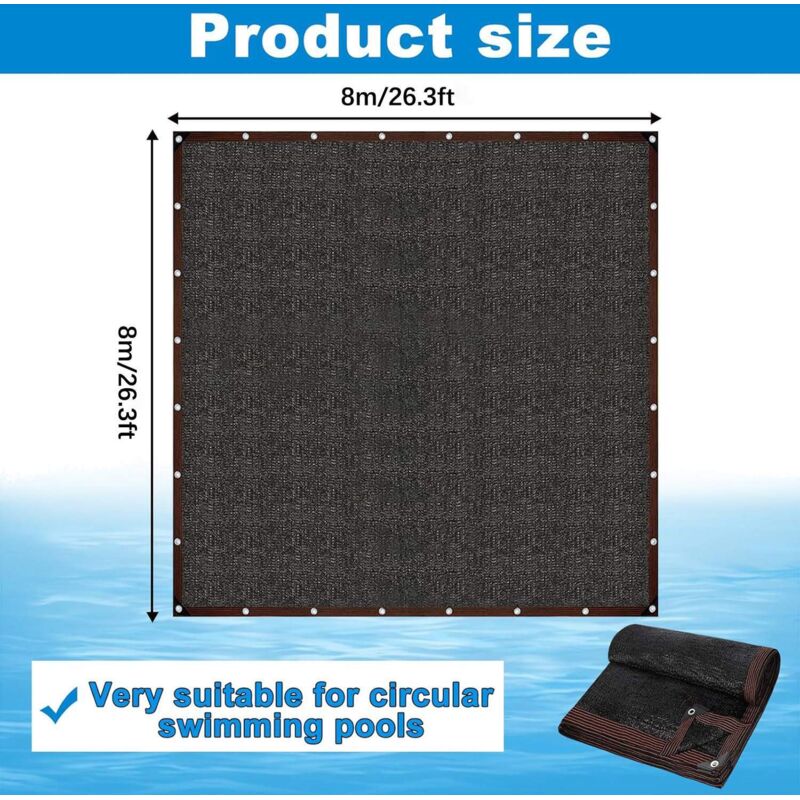 【Construit pour durer】Même si nous l'utilisons pendant longtemps, il n'est pas facile de se déformer ou de dégâts. 【Matériaux robustes】le filet anti-feuilles pour piscine est adapté aux piscines creusées. Ce filet léger protège votre piscine, hors sol ou enterrée, des feuilles, insectes et débris tout au long de l’année. Très flexible, il s’adapte à toutes les formes et tailles de piscine grâce aux connecteurs pont Couverture Filet De Feuille Pour Piscine - Bâche Protection Piscines... 【Fonctionnement sans effort】Le couvercle du filet de feuille de piscine noire est très facile à installer car il vous suffit de couvrir la surfaces de la piscine, et vous pouvez utiliser une corde pour traverser les trous sur le bord du filet et attacher les cordes à la balustrade par la piscine. Bâche de Protection pour Piscines Hors-Sol Rectangulaire 【Idéal pour les piscines rectangulaires】Notre filet de feuille de piscine est parfait pour les piscines rectangulaires, soit des piscines inférieures ou des piscines hors sol; Que vous souhaitiez l'utiliser à domicile ou à usage commercial, ce couvercle de filet de feuille répondra bien à vos besoins. Le filet de feuilles pour la piscine protège la piscine du soleil ou des nuances de la cour en été. Filet Anti Feuille Piscine 9x5 Couverture Filet De Feuille Pour Piscine Rectangulaire 5x10m, Bâche De Protection Pour Piscines Hors-Sol, Couverture De Protection Piscine Maille Fine Couverture Piscine Hors Sol été Fabriqués en polyéthylène de haute qualité, ils sont solides, résistants et difficiles à déchirer. Caractéristiques:Le couvercle de la piscine convient aux piscines dans le sol. Il est fait de polyéthylène de haute qualité, qui est fort et serré et pas facile à déchirer.