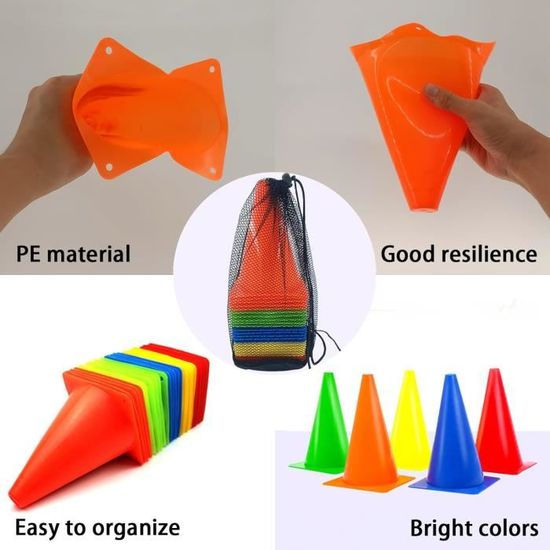 GICO Synco 1030 - Conos de plástico para Entrenamiento (30 cm Cônes Entraînement Sport Cônes En Plastique, 20 Morceaux De Cônes D'entraînement De Couleur, Cônes De Signalisation Cônes 30 Cm Couleur de la lumière : assure une visibilité optimale dans toutes les conditions d'éclairage Les cônes d'entraînement de 30 cm de hauteur sont un outil indispensable pour un entraînement sportif efficace, que ce soit pour le football, l'entraînement athlétique ou d'autres sports d'équipe. Que ce soit pour l'entraînement des jeunes ou pour des séances professionnelles, ces cônes de marquage aident à améliorer les flux de mouvement, à réduire les temps de réaction et à construire des cours d'entraînement structurés. Lot de 4 cônes de délimitation - 30 cm - Orange Construction stable : matériau en plastique robuste pour une longue durée de vie et une bonne stabilité De forme conique, aplatie à l’extrémité, ces plots de marquage offrent de nombreuses possibilités d’entraînement.Ils sont adaptés pour des exercices de coordination, pour le balisage des parcours et sont très appréciés par les entraîneurs et les enseignants.Grâce à leurs couleurs attrayantes (jaune ou orange), ces plots sont... Convient pour l'intérieur et l'extérieur : résistant aux intempéries – utilisable au stade, sur le terrain ou dans le hall Grâce à leur construction robuste et à leurs couleurs bien visibles, elles conviennent pour l'entraînement ciblé de coordination, les courses de slalom ou les exercices techniques par tous les temps et sur toutes les surfaces.