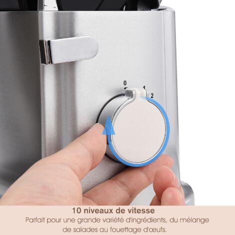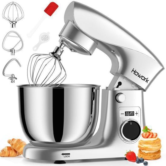 Réduction du bruit Le nouvel engrenage planétaire en métal garantit une stabilité lors des utilisations intensives, tout en maintenant un niveau sonore inférieur à 70 dB. EN STOCK : Robot patissier Professionnel 1000W, avec crochet pétrisseur, crochet mélangeur, fouet de Inoxydable, bol de 5 L, 10 vitesses, pour la pâtisserie - Gris, HWeSBYYH6JxDEOR pas cher. Livraison rapide partout en France Il vous permet de préparer facilement des gâteaux, des pains, des biscuits, de la purée de pommes de terre, des salades, etc. Polyvalence culinaire: Que ce soit pour préparer une purée onctueuse ou une pâte à crêpes délicieuse, le crochet mélangeur est là pour vous aider à atteindre la consistance idéale. Tous les accessoires passent au lave-vaisselle, garantissant un nettoyage rapide et facile. Fentic 6 en 1 Robot Pâtissier – 2000W - Av. Hachoir à Viande, Mixeur 1,5L, Cutter, Accessoires – Robot Cuisine Multifonctions Av. 6,2L Bol Mélangeur, Fouet, Crochet Pétrisseur, Batteur (Noir) | Votre wishlist sur Vitesses réglables 10 : Profitez de 10 vitesses différentes pour adapter votre préparation alimentaire à vos besoins spécifiques. De plus, les accessoires pétrisseurs et batteurs sont dotés d'un revêtement antiadhésif spécial pour un nettoyage facile. Facile à utiliser et à nettoyer : le robot pâtissier multifonction est livré avec 3 accessoires de mélange : crochet à pâte, fouet et batteur, qui peuvent être facilement fixés à l'arbre. Les niveaux 1 à 6 sont idéaux pour le pétrissage de la pâte, les niveaux 2 à 7 conviennent parfaitement au mélange de salades ou de beurre, tandis que les niveaux 8 à 10 sont parfaits pour battre les blancs d'œufs et la crème. Fagor Robot De Cuisine 5l 1000w Rouge Et Gris Avec Ligne Chrome Fg110 Puissant et Silencieux: Le moteur de 1000W et le boîtier en métal moulé sous pression confèrent au robot de cuisine un aspect haut de gamme et une performance silencieuse. Promo Robot Pâtissier Qilive chez Auchan