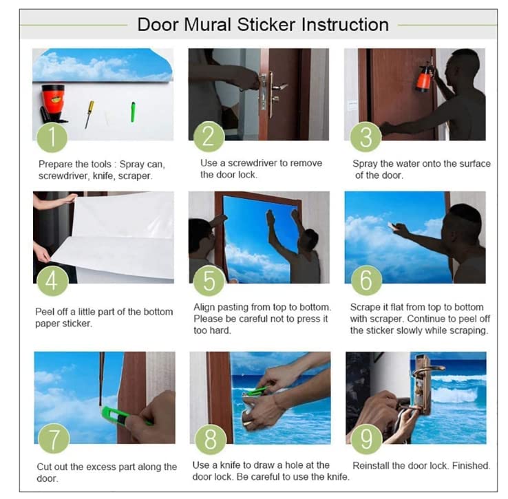【Effet 3D】 : ce sticker mural 3D a un effet illusion. Package et taille des autocollants de porte]: Le paquet contient 2 autocollants de porte (1 jeu), chaque taille d'autocollant de porte est de 45 x 210 cm et la taille totale du papier peint photo est de 90 x 210 cm Que ce soit une porte, un mur ou un meuble, vous pouvez décorer votre cadre de vie à votre guise. Utilisé dans la maison, les chambres à coucher, les salons, la salle à manger, les salles de jeux, la galerie, le bureau, le café, le décor des librairies. 【Scène applicable】: Il peut s'appliquer sur n'importe quelle surface sèche et lisse: porte, mur, sol, fenêtre, verre et ect. Éclairez vraiment une porte avec un bon travail d'équipe. Il suffit de peler et coller pour décorer votre maison. Sticker Porte Effet 3D Bateau De Pêche Étoile De Mer 77 X 200Cm Poster... Comment installer des autocollants 1., Retirez la poignée de porte., 2., Nettoyez votre porte / mur ou toute autre surface. GWELL Sticker Trompe l'œil Stickers de Porte 3D Effet Décoration Déco Murale Vinyle Amovible Sticker De Porte Cave à Vin Vintage Peinture Murale De Porte Sticker, Autocollant Porte Trompe L'oeil, Stickers Muraux Salon Porte, Cuisine, Chambre, Salle De Bain, Autocollant Porte(90 X 200cm Autocollant PVC Amovible Grand Format Profitez de votre temps en famille avec l'amélioration de la maison. Assurez-vous qu'il est lisse, sec et exempt de poussière et de saleté., 3., Mesurez la porte intérieure., 4., Déballez la feuille graphique et étalez-la sur une surface plane., 5., Coupez la feuille graphique si nécessaire., 6., Commencez dans un coin et déroulez doucement le support blanc de la feuille de transfert. Assurez-vous qu'aucun des autocollants ne reste sur le papier support., 7., Alignez le côté adhésif de l'autocollant avec la zone souhaitée et appliquez une pression ferme et uniforme pour assurer l'élimination complète des bulles., 8., Des bulles peuvent se former après l'application des graphiques. Prenez simplement une pointe ou une aiguille et piquez la zone de bouillonnement plusieurs fois. Quantité d'emballage: 2 feuilles d'autocollants (45 x 200 cm / set)