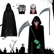 👻【Large Gamme d'utilisations】 Le costume de faucheuse d'Halloween est très approprié pour les fêtes costumées d'Halloween, les robes de mort, les maisons d'horreur, les sorciers, etc. 👻【Taille du Produit】Longueur du manteau: 140 cm, taille de la faucille : 35 * 82 cm, masque et gants: Dimensions universelles. 👻【Matériau de Haute Qualité】 Le manteau en tissu est doux au toucher et le bonnet est assez large; la faucille est en plastique de haute qualité et le manche est épissé en un tout très stable et ne se desserre pas; Ce masque est également fait de tissu de coton de haute qualité, léger, pro - peau et respirant. Déco Fête Halloween DanDun Grim Reaper Costume Costume De Faucheuse, Costume D'Halloween (Cape Noire, écharpe De Crâne, Scythe, Gants), Décoration D'Halloween, Cosplay, Grim Reaper Pour Fête Masquée Costume Halloween Vous pouvez acheter Yi'antai 4 pièces deguisement vache enfant ensemble en ligne dans notre comparateur d'offres, avec toutes les données et offres sur le réseau Shinybox Halloween Faucheuse, Capuche Cape Halloween avec Masque Squelette et Gants Squelette, Faucille et Autocollants, Capuche Cape pour Fête Cosplay Carnaval C'est l'accessoire de déguisement parfait pour la fête d'Halloween.