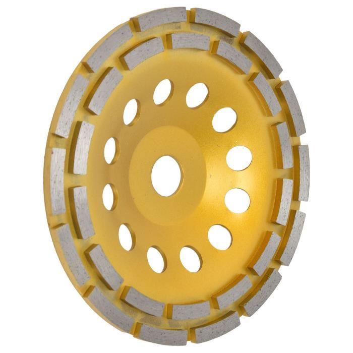 Paramètres du produit : meuleuse à béton, diamètre 125 mm, diamètre intérieur 22,23 mm, 6 lames PKD, hauteur de la lame 4 mm, hauteur totale 21 mm, convient pour les grandes meuleuses d'angle, les meuleuses à béton, les fraiseuses à béton, les meuleuses murales et les systèmes de ponçage avec vis filetée M14 Meule Diamant Diamètre 125 Akozon Disque De Meuleuse D'angle Meule Diamantée à Double Rangée De Meule Diamant Extérieure La coupelle PCD PRODIAMANT offre des performances impressionnantes pour les travaux exigeants. Avec 4 à 6 segments PCD de haute qualité, elle garantit Polyvalent : nos ponceuses à béton / polisseuses de sol sont équipées de 6 lames PKD spéciales pour un ponçage efficace des matériaux tenaces. Refroidissement et évacuation efficace des copeaux : la haute densité des rainures de précision dans la meule permet un enlèvement direct du matériau, réduit l'accumulation de poussière jusqu'à 70 % et réduit la charge thermique de la lame PCD. Disque de meuleuse d'angle YOSOO - Meule diamantée pour béton, pierre... Conforme à la norme DIN EN 13236 : fabriquées selon la norme DIN EN 13236:2024-07 (norme de sécurité pour les travaux de ponçage), nos disques de ponçage sont équilibrés avec précision et peu de vibrations (avec une émission de vibration ≤ 2,5 m/s²). Il élimine efficacement le béton et autres revêtements de surface. Meule Diamant Pour Carrelage époxy PRODIAMANT PKD Meule Diamantée 125 Mm Pour Meuleuse D'angle – 6 Disque Ponçage Béton Meuleuse Angle