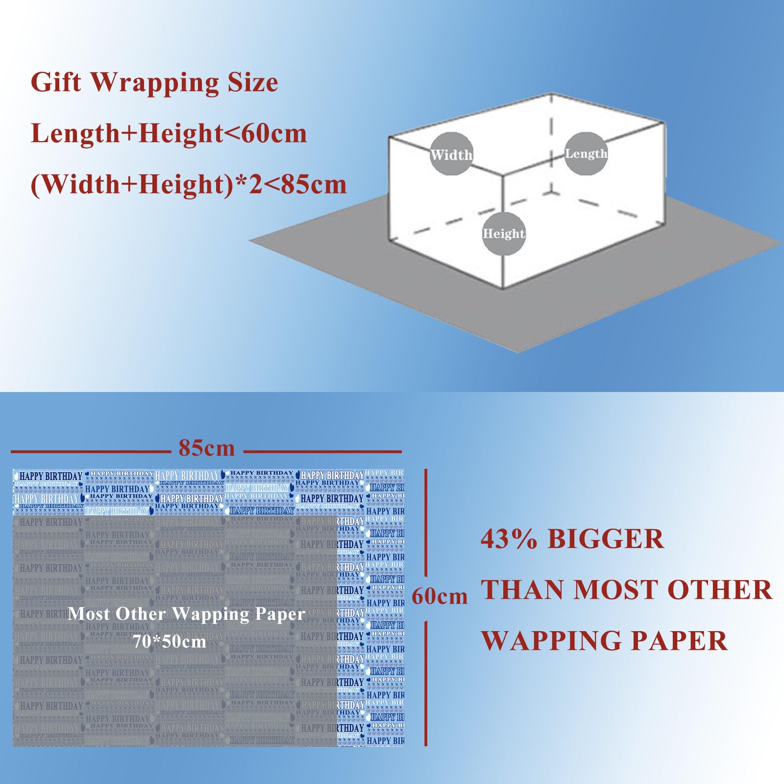 ❀Remarque : Veuillez confirmer la taille et la couleur avant d'acheter et contactez-nous si vous avez des questions. Larcenciel Papier Cadeau Métallique Brillant, 6 Feuilles Papier Cadeau Contenu : 4 feuilles de papier cadeau « Love » en 4 couleurs et un rouleau de ruban bordeaux de 2 m. Haute qualité 4 * 85*60cm ,4 Ruban Papillon,2 Cartes,4 Étiquettes-cadeaux ** Comme les lots de production sont différents, la couleur du papier cadeau peut être différente. Papier cadeau anniversaire - Achetez une variété de produits à prix abordables sur . Economisez avec notre option de livraison gratuite. Achetez en toute confiance et sécurité sur Le papier d'emballage a un effet lisse et brillant., ❀Occasion:anniversaires ** Livré avec du papier cadeau plié. 85x60 Cm Avec Rubans Anniversaire,4 * 85 * 60cm Avec 4 Ruban Papillon,4 Cartes,4 Étiquettes-cadeaux, Cœur Pour La Saint Valentin,Anniversaire, Halloween,Noël,Mariage Papier Cadeau