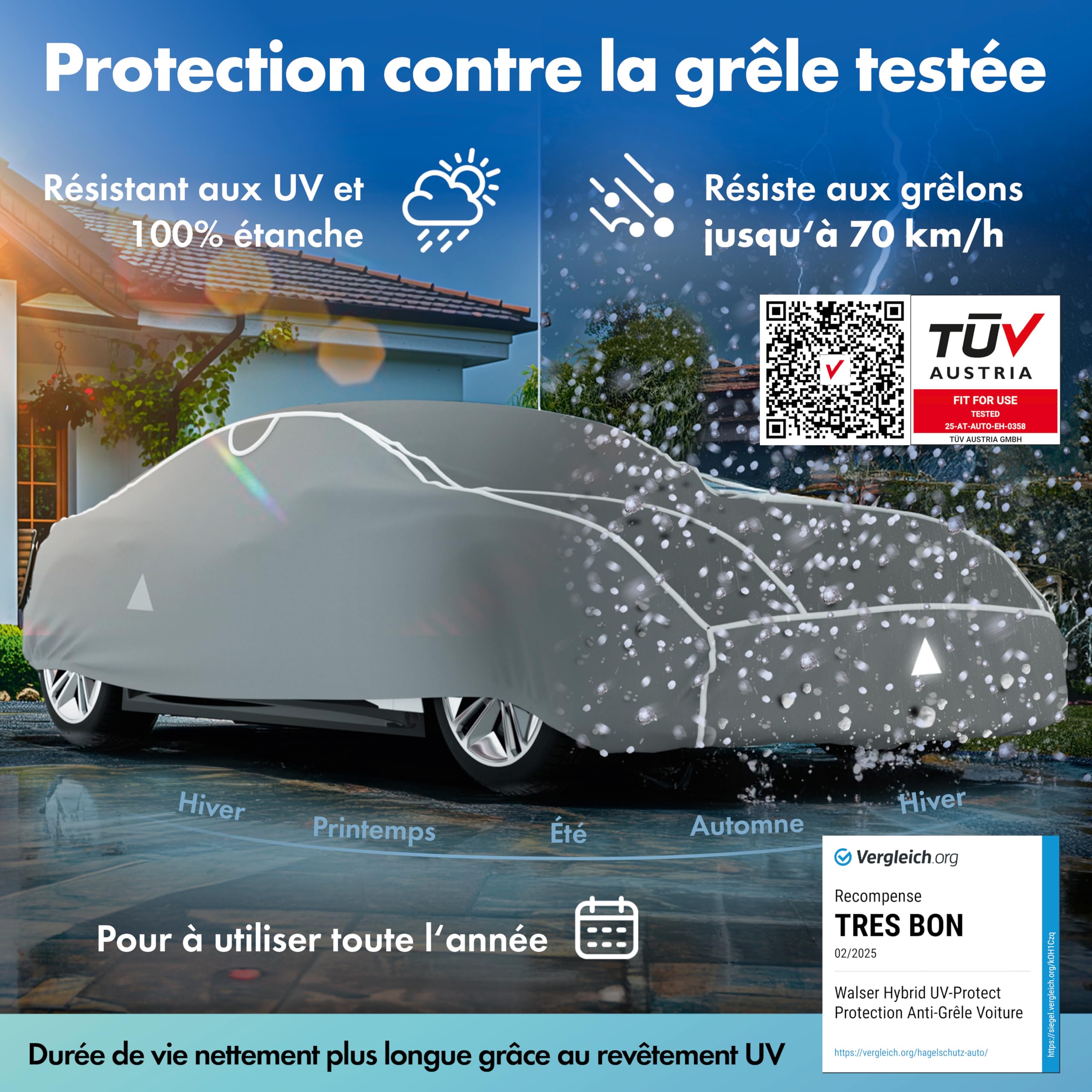 FERMETURES À ZIP PRATIQUES : Grâce à un système de fermeture à zip bien pensé avec trois fermetures à zip sur les côtés et à l'arrière de la bâche, les portes, les compartiments de rangement, le porte-vélos ou le garage arrière restent toujours accessibles, quel que soit le modèle de véhicule. Grâce à ce matériau de haute qualité, la bâche de protection pour caravane offre non seulement la meilleure protection contre la pluie et le vent, mais elle protège aussi efficacement contre les rayons UV par beau temps. Walser Premium Bâche pour Caravane, Couverture de Caravane 100% résistante aux intempéries, bâche de Caravane imperméable avec Protection UV Une protection fiable pour votre caravane par tous les tempsNotre bâche de protection est le choix idéal pour les propriétaires de caravanes. Elle protège efficacement contre la saleté et les intempéries, afin que votre véhicule reste toujours au top. Fa... Vous pouvez ainsi ouvrir facilement et confortablement les portes de la caravane sans devoir retirer la bâche du véhicule. WALSER Premium Bâche pour Caravane, Housse de Ainsi, la bâche de protection pour caravane se range facilement et reste un compagnon fiable pour la caravane pendant longtemps. Notre conseil WALSER : retirer régulièrement la bâche de la voiture, l'aérer et la sécher - l'humidité permanente réduit la durée de vie. Bache Camping Car Walser Premium Bâche Pour Caravane, Couverture De Caravane | FindTheDeal Housse Caravane Avec Zip Rangement Ainsi, les bâches pour caravanes conviennent à la plupart des véhicules courants sur le marché (voir à ce sujet les images d'information sur les dimensions respectives). Concrètement, la bâche de couverture de qualité supérieure protège des intempéries extérieures comme la pluie, la glace, la neige et autres salissures comme la poussière, les fientes d'oiseaux et les feuilles mortes. QUALITÉ MATÉRIELLE SUPÉRIEURE : la bâche de protection 100% étanche est fabriquée en fibres non tissées enduites de PP très résistant (surface du toit : 50 g/m2, parties latérales : 120 g/m2).