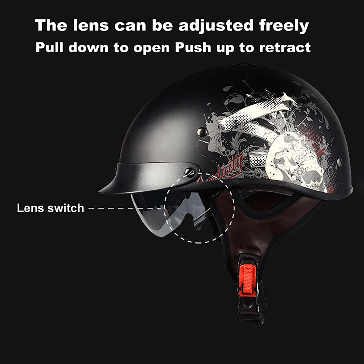 Casque Bol Moto Bols Rétro Adultes Casque Cuir Open Face Demi-Casque Casque 3/4 Moto Scooter Demi Casque De Moto, Casque Jet Rétro, Casque Bol Moto Homologué ECE Casque Homologué ECE DOT ✔ APPLICABILITÉ : Moto, Moto, Motard, Cruiser, Chopper, Scooter, Skateboard, Cyclisme, Jet, Pilote, Casque de Tourisme, pour adultes, jeunes, hommes, femmes. ✔ MATÉRIAU Fabriqué en composite renforcé de coque ABS, traitement de surface de revêtement écologique. ✔ CASQUE DE MOTO : Ce casque est conforme aux normes de sécurité DOT/ECE. Casque de moto professionnel : le casque est conforme aux normes de sécurité DOT/ECE. · ➤➤ Coque de haute qualité Il constitue un outil de sécurité essentiel pour vos activités de plein air. Tous Nos Casques Moto Vintage Sont Homologués CE Et Répondent Aux Dernières Exigences En Matière De Sécurité. Le Casque Jet Rétro Vous Offre Une Sensation... ✔ CONCEPTION LÉGÈRE : Le poids du casque réduit la fatigue causée par la pression nerveuse pour les motocyclistes longue distance ou les cyclistes urbains. ✔ BOUCLE RAPIDE : Système de boucle à dégagement rapide, offre une protection parfaite, donne beaucoup de plaisir à votre conduite.