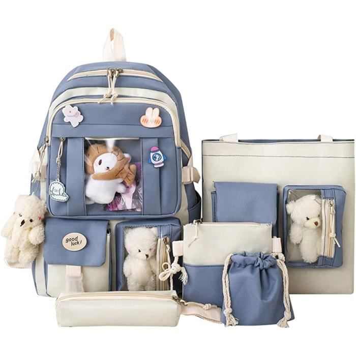 Le sac à dos d'école KEBEIXUAN est un accessoire indispensable pour les femmes, les filles, les adolescents et les enfants. Il est à la mode et pratique, un complément parfait pour votre vie scolaire et vos voyages Design de dessin animé : ce sac à bandoulière est inspiré des jolis motifs de dessins animés que les filles adorent. Sac Voyage Cadeau Enfant Ado Sac à Dos Kawaii, Sac à Dos De Grande Capacité, Sac à Dos Mignon D Sac à Dos Fille Motif Dessin Animé Multi-poches Ces adorables accessoires sont un favori parmi les filles. Capacité extraordinaire : le design spacieux du sac à dos, mesurant 30 cm de large et 40 cm de haut, offre un grand espace intérieur pour les livres, la papeterie et les articles personnels, répondant aux besoins quotidiens des étudiants pour l'étude et les activités, ce qui le rend facile à utiliser en toute occasion. Occasions appropriées : ce joli sac à dos est non seulement adapté pour une utilisation scolaire, mais sa capacité généreuse le rend parfait pour les voyages, les loisirs et diverses activités intérieures et extérieures. Grande capacité et plusieurs poches : ce sac à dos pour fille mesure 47,8 x 30 x 19,1 cm (L x l x H) et dispose d'une poche principale, de deux poches avant et de deux poches latérales pour répondre à tous vos besoins de rangement quotidiens Sac à dos Kawaii avec pendentif, grande capacité, mignon, ours Le motif de dessin animé est peint avec un revêtement imperméable de haute qualité, ce qui le rend durable et durable. Le schéma de couleurs bleu et blanc le rend non seulement agréable à l'œil, mais ajoute également une touche unique et personnelle. Ils améliorent le design du sac à dos et vous permettent de le personnaliser en fonction de votre humeur ou de votre occasion, créant un look unique.