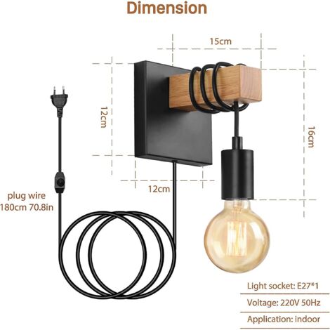 E27 Retro Industrial Applique murale avec interrupteur à tirette Vintage Lampe murale LED d'intérieur orientable Noir Antique Lampe rotative à 180° Spot mural en métal pour chambre à coucher, couloir, café, loft Large Application de Spots Muraux : idéal pour toute lampe avec culot E27/E26, puissance maximale par douille 60 W. Cette lampe murale peut également servir de veilleuse ou de lampe de chevet, tout en ajoutant une touche décorative à votre chambre. Installation facile et pratique de l'applique murale Appliques murales rétro vintage en métal noir lampe industrielle douille E27 pivotante avec interrupteur à fiche lampe murale antique moderne. La lampe peut être tournée et pivotée, fixée à un mur ou suspendue au plafond Appliques murales avec interrupteur et prise : l'applique murale d'intérieur a une prise qui peut être branchée directement dans la prise sans installation d'électricien. Créez une ambiance rétro et romantique dans vos pièces. Applique murale led lampe liseuse chambre rotatif mur rotatif lumières Vous pouvez régler l'angle d'éclairage pour maximiser le potentiel d'éclairage afin de répondre à vos divers besoins. Appliques murales rétro vintage en métal noir lampe industrielle douille E27 pivotante avec interrupteur à fiche lampe murale antique moderne. Longueur du câble : 1,8 mètres Base de la lampe : ampoule LED E27/E26 ou ampoule Edison (l'ampoule n'est pas incluse). Le forfait comprend : 1 x éclairage mural vintage industriel 1 x kit d'accessoires de montage Cette lampe a non seulement un effet d'éclairage, mais également un excellent effet décoratif. Applique murale à bras oscillant réglable : l'applique murale industrielle est équipée d'articulations réglables à 180°, qui peuvent être ajustées librement de haut en bas et pivoter de gauche à droite. Avec une prise et un interrupteur, vous pouvez facilement utiliser la lampe n'importe où. Caractéristiques : Angle réglable Rotation à 180° : peut pivoter à 180°, régler la lumière dans différentes directions Style : Vintage / Industriel Tension d'entrée : AC85-265V 50/60Hz Puissance maximale : 60 W max.