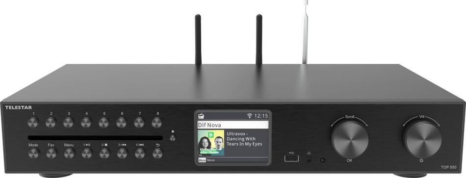 Son : deux haut-parleurs de 3 de 10 W (20 W au total) assurent un son de pointe. En outre, elle reçoit la radio Internet via WiFi/Wi-Fi. Fonction d'émission : transférez n'importe quelle station de radio via Bluetooth à vos écouteurs sans fil ou haut-parleurs Bluetooth. Radio Internet - Telestar - Top 500 - Bluetooth 5.3 - Streaming intégré - Enregistrement USB - TV Son Photo Caractéristiques : grand écran couleur lumineux de 6,1 cm avec fonction variateur d'intensité (uniquement pour la veille et le fonctionnement), mode nuit, fonction d'enregistrement USB, lecteur multimédia USB, système d'alerte d'urgence ASA, réveil, minuterie de sommeil, 4 touches de sélection directe , Connexions : 1 USB 2., 0, 1 entrée AUX de 3,5 mm, 1 prise casque, 1 port d'alimentation, 1 connecteur d'antenne à visser Grâce à la fonction d'émission et de réception Bluetooth pratique, la radio peut être utilisée comme récepteur pour les appareils externes ou comme émetteur pour haut-parleurs et écouteurs sans fil Radio Multifonction Enregistrement Usb Telestar Top 300 – Radio Dab Plus -Internet Avec Lecteur CD (stéréo, 2 X 15 W, Services De Streaming, Fonction Bluetooth émetteur-récepteur, Enregistrement USB, Système D'Alerte D'Urgence) – Noir Radio Avec Application Contrôle Découvrez la radio numérique compacte TELESTAR TOP 250 avec Wi-Fi, qui vous donne accès à de nombreuses stations de radio Internet. Grâce à la prise en charge du Bluetooth 5.3 et de l'USB, vous pouvez diffuser de la musique sans fil ou la lire directement depuis une clé USB