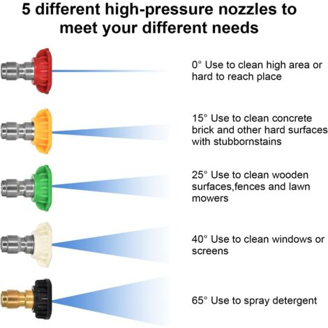 Compatibilité : compatible avec LAVOR FORParkside PHD, Forvax, certains modèles ForInterskol, certains produits ForHammer Sterwins, ForChampion, ForCraftsman, ForParkside. Nettoyage efficace] Connecteur de laveuse à jets qui s'adapte au karcher k2-k7 se transforme en raccord femelle 1/4"à déconnexion rapide.Un design à connexion rapide de 6,35 mm, une pression jusqu'à 4000 psi.S'adapte à la plupart des tiges de nettoyeur haute pression Caractéristiques : * Compatibilité : cet adaptateur est conçu pour se connecter sans problème à différents modèles, y compris pour LAVOR forPARKSIDE PHD, forVAX, et certains produits Interskol et Hammer Sterwins, une solution polyvalente pour vos besoins de nettoyage. Compatibilité sans couture : cet adaptateur se connecte sans effort avec des modèles tels que PHD et , ce qui en fait un ajout à votre kit d'outils de nettoyage. Connexion rapide et facile : la fonction de connexion rapide de 6,35 mm simplifie la fixation aux nettoyeurs haute pression, améliorant la commodité lors de l'utilisation. Résistance efficace à la température : résiste à des températures allant jusqu'à 60 °C, cette buse est parfaite pour les applications d'eau chaude qui augmentent l'efficacité du nettoyage. * Connexion rapide : la fonction de connexion rapide de 35,6 cm permet une fixation rapide et facile aux nettoyeurs haute pression, offrant plus de commodité et d'économie lors de l'installation et de l'utilisation. Adaptateur de buse compatible pour Karcher K2 K3 avec fonction de * Compatibilité haute universalité : non., * Numéro OEM : non. * Résistance à la température : avec une tolérance de température maximale de 60 °C, cette buse fonctionne efficacement dans les applications d'eau chaude, améliorant votre efficacité de nettoyage. *Matériaux : plastique et laiton., *Taille : non., Couleur : voir photo. Mousse à neige pour outil de mousse haute pression de la série YILI... Adaptateur Laiton Plastique Résistant MaxEarn Kit De Raccordement Rapide 1/4" Avec Embouts De Buse De Nettoyeur Haute Pression 5 En 1 Kit Mousseur Caractéristiques : * Nom de la pièce : adaptateur de connexion à la buse.