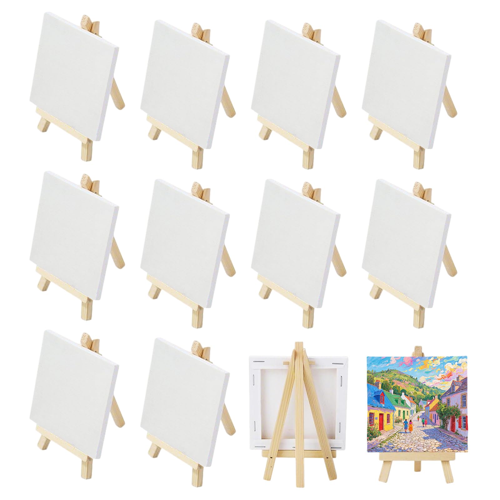 STRUCTURE STABLE - Le mini chevalet est triangulaire, le triangle étant la structure la plus stable. MINI TOILE AVEC CHEVALET - 12 toiles et 12 chevalets. Description de Ensemble de 15 mini-toiles et chevalets, mini-toiles de 10 x 10 cm [Matériel de peinture de qualité supérieure] : Notre petite toile est stable, flexible et offre une excellente tension, pour une expérience de peinture optimale Lot de 10 mini toiles : notre petite toile à peindre contient 10 mini toiles (15 x 15 cm), 10 petits chevalets, 12 pigments acryliques colorés (3 ml), 4 pinceaux (2 styles) et 2 palettes de couleurs en forme de fleur. Un ensemble complet d'outils pour répondre à vos besoins de peinture Cette conception lui permet de supporter des objets légèrement plus lourds et convient à une utilisation comme support pour téléphone portable ou tablette. Lot de 16 mini-toiles de 10 x 10 cm avec chevalet pour Vous n'avez pas à craindre qu'il tombe soudainement lorsque vous peignez dessus. Le trépied peut également être personnalisé dans votre couleur préférée. Toile Peinture Enfant Lot De 12 Mini Chevalet Toile, 10 X 10 Cm, Petites Toiles Lot 12 Toiles 10x10 Cm La taille du chevalet est de 15 x 8 cm. MATÉRIAUX - Le chevalet est en bois de haute qualité et déjà poli. La toile est 100 % coton et pré-apprêtée, parfaite pour la peinture acrylique, à l'huile et à l'aquarelle.