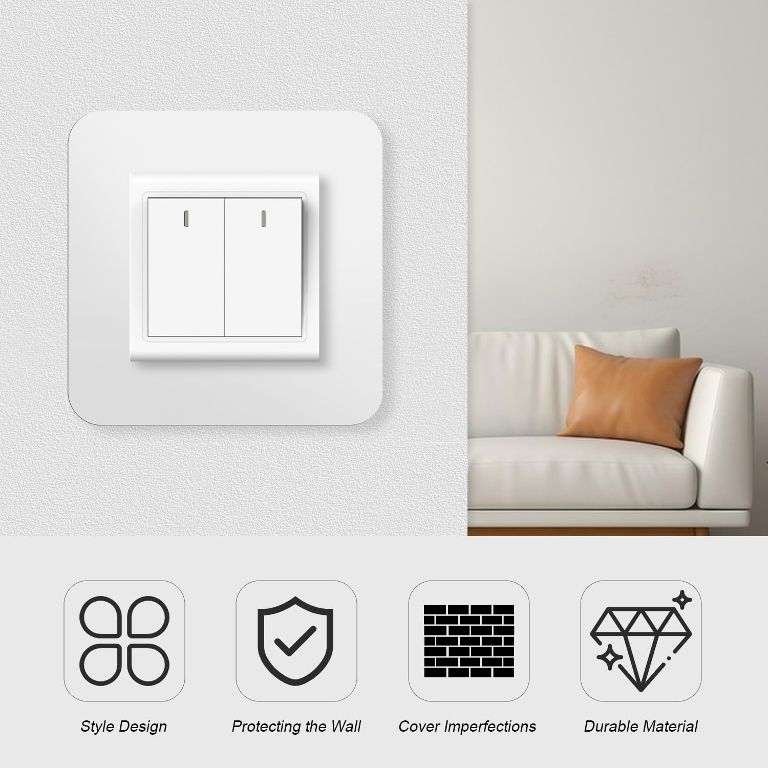 Taille : Les dimensions internes du couvercle de l'interrupteur d'éclairage sont de 8,6 x 8,6 cm et les dimensions externes sont de 14,6 x 14,6 cm, veuillez mesurer votre interrupteur avant d'acheter. Matériau : Cet autocollant décoratif pour interrupteur est fabriqué en résine, résistant à l'usure, peut être utilisé pendant une longue période, parfait pour la décoration d'interrupteur d'éclairage domestique. Pratique : le couvercle de l'interrupteur d'éclairage protège efficacement vos interrupteurs et prises des empreintes digitales et des marques, garde vos murs propres, essuyez-le simplement avec un chiffon doux ou une éponge. Angoily 2 Ensembles Autocollants D'interrupteur De La Saint Facile à utiliser : Les couvercles d'interrupteurs d'éclairage auto-adhésifs adhèrent solidement à une variété de surfaces lisses et propres et sont faciles à retirer, repositionner et réutiliser sans laisser de dommages ou de résidus. Autocollants créatifs pour interrupteur de fleur dorée, 1 pièce, pour salon, chambre à coucher, entrée, décoration de la maison, autocollants muraux Autocollants Interrupteurs Décoratifs Duisoad Lot De 3 Autocollants Pour Interrupteur - En Acrylique Blanc - Pour Décoration D'interrupteur Mural Décoration Interrupteur Noir Moderne Autocollants décoratifs pour la maison : le design unique est la décoration pour les chambres, les chambres et les salons. Autocollants muraux : il suffit de retirer cette étiquette d'interrupteur et de la coller, et elle deviendra un paysage fascinant dans votre chambre