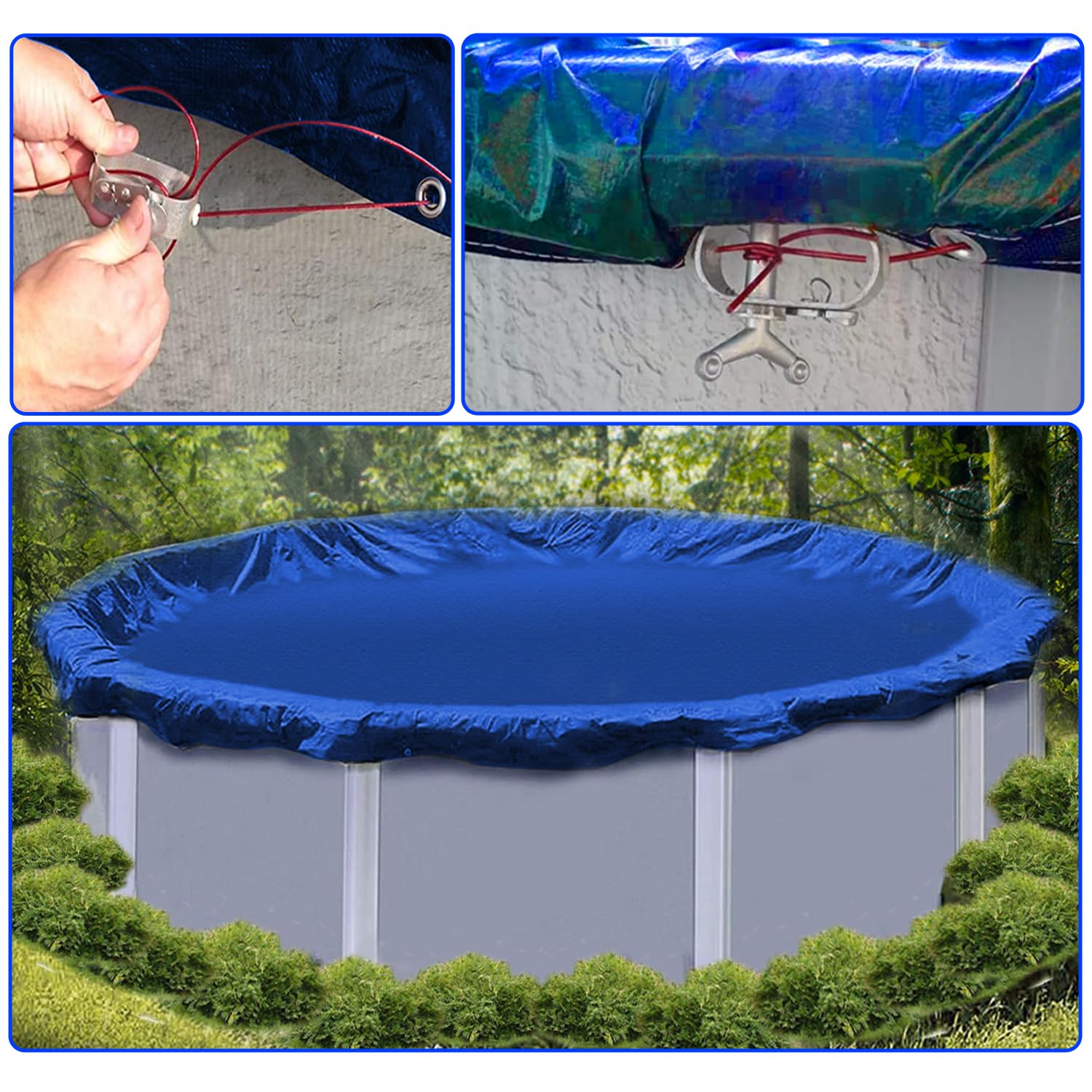 * Facile à installer : avec un processus d'installation simple, ce kit vous permet de serrer solidement votre bâche de piscine en peu de temps, améliorant votre commodité et économisant votre énergie. Câble de Serrage avec tendeur pour bâche Piscine Kit 3 Treuil Filet (150ft *Ajustement polyvalent : avec un câble en acier revêtu de plastique de 30,5 m, il est adapté à la plupart des piscines hors sol. *Nombre de pièces : 2., Contenu de l'emballage : 1 câble en acier recouvert de plastique., 1 pince de serrage. Matériaux résistants à la rouille : conçu pour résister aux intempéries difficiles, ce kit conserve sa fonctionnalité et son attrait esthétique année après année. Bache De Sol Piscine Tendeur Câble Piscine Kit Tendeur Câble Métallique TKGEOUE 36m - Pour Fixation Bâche Piscine Hors Sol Hiver Câble Tension Couverture Fixation Solide Bâche Caractéristiques : * Nom du produit : kit de serrage de piscine. Solution de fixation tout-en-un : ce kit de fixation de bâche de piscine de 30,5 m dispose d'un câble en acier revêtu de plastique fiable et d'un tendeur, parfait pour sécuriser efficacement les couvertures de piscine hors sol contre les débris et les accidents. Installation rapide et simple : le processus d'installation simple permet aux utilisateurs de serrer facilement leurs couvertures de piscine, améliorant ainsi la commodité pour les propriétaires de piscine occupés. *Matériaux : plastique et métal. Câble de serrage avec tendeur pour bâche piscine-100 pieds *Dimensions : 25 x 11 x 15 cm., *Couleur : bleu., * Compatibilité : piscine. Mxzzand Kit Câble Sangle Bâche Piscine - Jardin