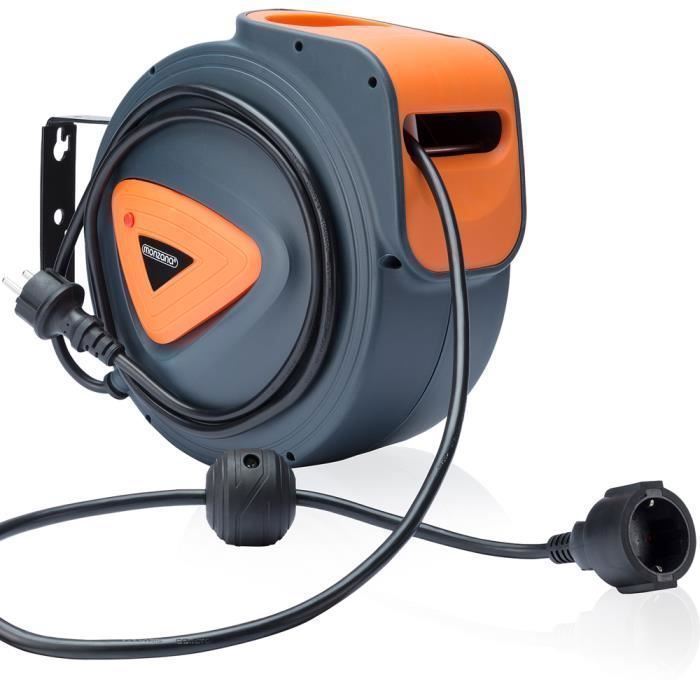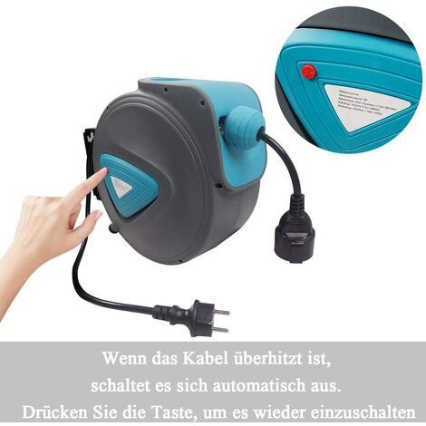 Appuyez sur le bouton rouge pour redémarrer la machine après avoir refroidi. Sécurité accrue : l'enrouleur de câble est doté d'une fonction intégrée de protection contre la surchauffe. À une température supérieure à 45 °C, un bouton rouge situé sur le boîtier coupe automatiquement l'alimentation électrique, ce qui garantit une utilisation sûre dans votre environnement Après l'étirement, le câble peut être rapidement rétracté pour éviter les enchevêtrements de câble Appuyez sur le bouton rouge et l'enrouleur de câble commence à se réinitialiser. Idéal pour le bricolage et les applications industrielles, peut être utilisé dans les ateliers, les chantiers de construction, les maisons ou les jardins. Enrouleur Mural Electrique Enrouleur De Câble Automatique 20m+1.5m Pivotant à 180°Trous Rétraction Automatique Câble Caractéristiques techniques : Longueur du câble 20 m - Longueur du câble de raccordement : 1,5 m. Après avoir tendu le tuyau, il peut être rapidement rétracté, et les raccords en plastique s'étirent et attrapent le tuyau pour le protéger contre les dommages. Utilisation multiple : l'enrouleur de câble est très peu encombrant et flexible. Le câble est bloqué tous les 3 m par un arrêt automatique de rétraction. ENROULEUR DE CÂBLE AUTOMATIQUE 15 METRES 230V HOLZMANN EKR15M Arrêt automatique : l'enrouleur de câble s'éteint automatiquement lorsque le courant nominal ou la tension nominale est dépassé pour protéger les appareils contre les dommages. Poppstar Disjoncteur protecteur thermique pour enrouleur de câble électrique (1 pôle, 250V, 16A...