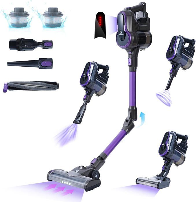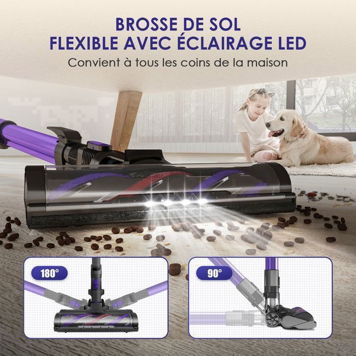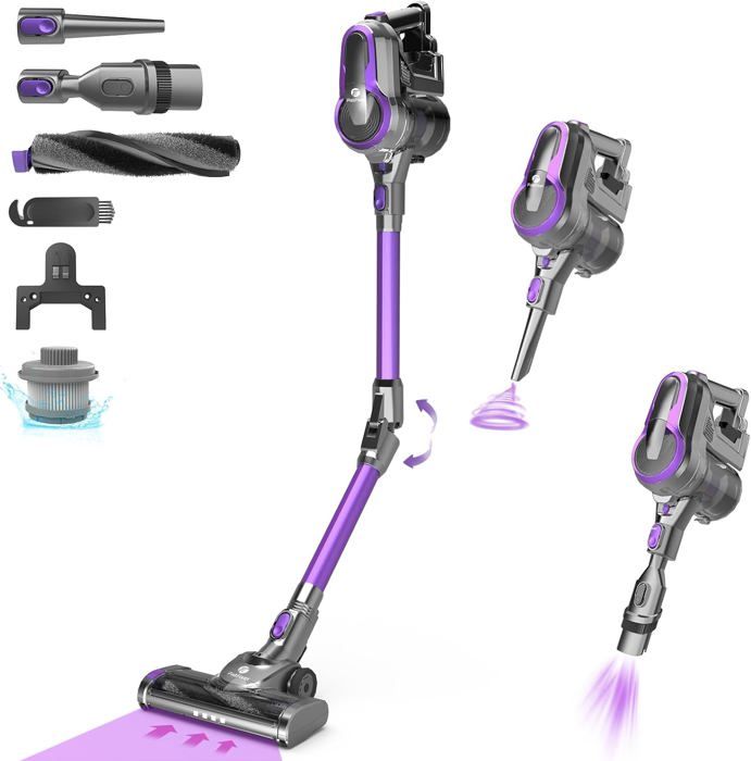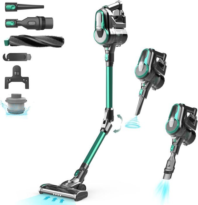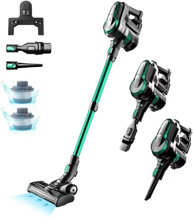 La durée de vie de la batterie correspond aux différents modes d'alimentation: 25KPa-50min, 35KPa-30min, 45KPa-15min. L'aspiratur balai sans fil H35 d Vortx st doté d'un motur numériqu brushlss BLDC d 350W ultra puissant lui prmttant un prformanc xcptionnll t un durabilité hors pair Relâcher de l'air frais Plus de couches de filtre assurent une plus grande efficacité de travail La conception de construction unique augmente la puissance d'aspiration de l'aspirateur sans fil de 30%. Sa particularité : la fonction mémoire maintient le mode de fonctionnement initial. Le mode haute vitesse est idéal pour les environnements les plus difficiles et les nettoyages rapides. 【LED Long Crevasse】 L'aspirateur sans fil est équipé d'une brosse à sol électrique, d'une brosse 2 en 1 et d'autres accessoires courants pour nettoyer les sols durs, les canapés, les bureaux, les plafonds et autres endroits. Le mode moyen peut être utilisé pendant 30 minutes, tandis que le mode basse vitesse permet de nettoyer toute la maison. Écran tactile intelligent, surveillance en temps réel de la batterie et changement de mode à volonté. Batterie amovible pour une recharge pratique, permettant d'étendre l'autonomie en changeant de batterie. Brosse motorisée avec éclairage led, permettant de déloger la poussière même dans les recoins les plus sombres L'aspirateur sans sac filtre complètement l'air inhalé, maintient les particules dans la couche filtrante, puis libère de l'air frais pour protéger votre santé et celle de votre famille. Schiuma Aspirateur Balai Sans Fil 30000Pa, 350W Puissant Aspirateur Aspirateur Sans Fil Batterie Amovible Aspirateur Balai Sans Fil,45Kpa/560W Aspirateur Sans Fil Puissant Léger Filtration 6 Couches La batterie peut être chargée sur l'aspirateur à main, ou détachée et chargée séparément, ce qui est flexible et pratique. Buse Longue Plate Lumineuse 【45Kpa Aspiration Puissant】 L'aspirateur balai sans fil S10 est équipé du nouveau moteur sans balais 350W, qui peut produire une puissance d'aspiration maximale de 45KPa/140AW (mode de puissance à 3 niveaux). 【6 Couches Système de Filtration】Cet aspirateur sans fil adopte un système de filtration ultra-haute efficacité à 6 couches et 12 structures coniques génèrent une forte force centrifuge pour briser la poussière dans la poussière pour garder boîte à poussière L'efficacité de filtration de l'aspirateur sans fil atteint 99,99 %, ce qui signifie que l'air évacué de l'aspirateur est très frais, ce qui est très convivial pour les personnes âgées et les enfants. 【Autonomie Maximale 50Mins & Batterie Amovible】 L'aspirateur sans fil est équipé d'une batterie amovible et rechargeable de grande capacité.