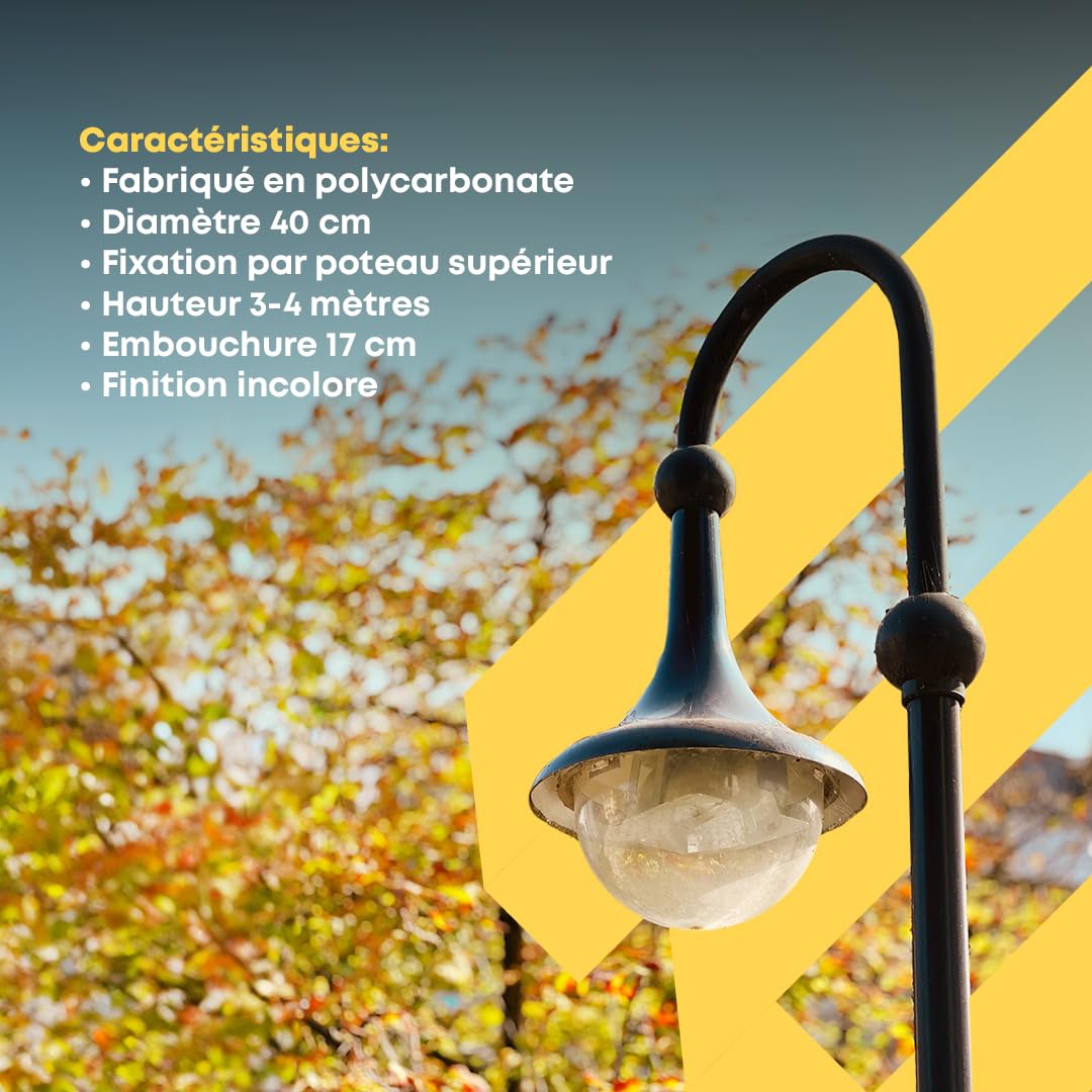Extrumol - Globe de Réverbère Anti-Pollution Lumineuse - Polycarbonate Prismatique Gravé - Gris Kit éclairage Extérieur Extrumol - Globe D'Éclairage - Lumières Extérieures - Polyéthylène - Remplacement Sans Filetage Blanc Dimensions 55 Cm Embouchure 17 Cm 92577734 éclairage Jardin Allée Parc E27 POUR LES ENVIRONS EXTÉRIEURES : le design discret de ce kit favorise une intégration visuelle harmonieuse dans tous types de projets urbains, résidentiels ou commerciaux. Éclairage uniforme : le globe d'éclairage fournit une lumière douce, homogène et efficace, parfaite pour créer des ambiances accueillantes mais bien éclairées. Couleur de la base : blanc DESIGN MODERNE : Le diffuseur sphérique d'Extrumol est idéal pour les développements urbains. Son design en forme de boule projette la beauté et le bon goût architectural et décoratif dans les moines détails, même dans l'éclairage public MONTAGE SIMPLE : la base intègre un manchon de jonction pour colonne de 60 mm avec réducteur à 50 mm, et son design semi-sphérique permet un accouplement parfait avec le globe diffuseur. Lampe sphérique d'extérieur NEWGARDEN Buly - Blanc - Polyéthylène - Éclairage LED lumière froide... Son installation est rapide et sûre, et s'adapte aux colonnes de 3 à 4 mètres de hauteur, facilitant le remplacement des luminaires anciens ou endommagés. Base robuste : la base incluse, fabriquée en polycarbonate haute résistance, permet un montage stable et durable.
