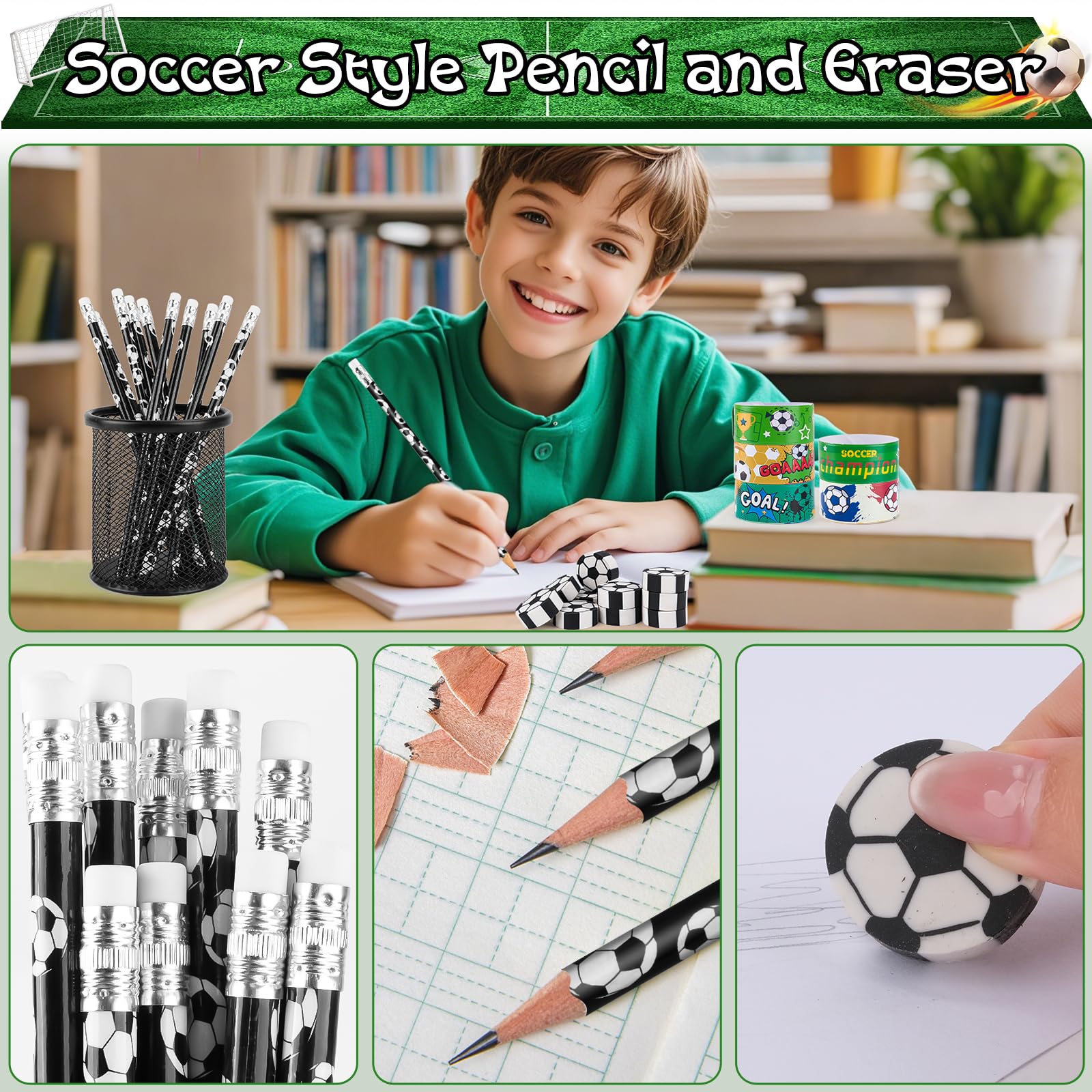 ⚽🏆【Ludique et Éducatif】Ce petit cadeau anniversaire enfant invité combine jeu et fournitures scolaires pour développer la logique, la mémoire et la motricité, permettant aux enfants d'apprendre en s'amusant. Son utilisation est simple : il suffit de tourner le lanceur pour propulser la bille, et le but est marqué lorsque celle-ci passe dans les cages. HGRGHH 98 Pièces Football Pinata Anniversaire Garcon, Cadeau Anniversaire Enfants avec Bracelets, Autocollants, Sacs Cadeaux, Gomme, Crayon, Petits Cadeaux Deco Anniversaire Foot pour Garçon et Fille Joyeux Anniversaire Garçon Avec Pinata Clip De Dessin Animé | Vecteur... Ces goodies stimulent l'intérêt pour le football tout en rendant l'écriture amusante, transmettant la passion du sport tout en favorisant l'apprentissage. Pinata Football pour Anniversaires et Fêtes ⚽🏆【Cadeau Idéal】Cadeaux de fête de football pour enfants parfait pour les fêtes d'enfants, anniversaires, festivals ou événements scolaires, ce set ravira les fans de football de tout âge. Adapté pour divers occasions (matchs, fêtes sur le thème du football, événements sportifs, sorties scolaires., ., ., ), il créera une ambiance dynamique et rendra votre événement inoubliable ! Cadeaux Fête Football Enfants HGRGHH 98 Pièces Football Pinata Anniversaire Garcon, Cadeau Anniversaire Football Garcon Les autocollants vinyle adhèrent bien sans laisser de traces et sont repositionnables. ⚽🏆【Kit Football Pinata Anniversaire Garçon】Ce football decoration fête anniversaire kit contient : 10 crayons à papier football, 10 gommes en forme de ballon, 3 taille-crayons, 10 mini flippers football et 10 bracelets football, ainsi que 50 autocollants sur le thème du football. (Note : Veillez à ce que les enfants ne mettent pas accidentellement dans leur bouche la gomme au bout des crayons)