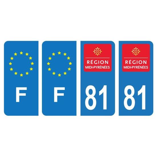 Lot 4 Autocollants plaque immatriculation voiture département 81 Tarn Région Occitanie Noir Couleur & F France Europe. En 1 fois. 6,99 €. 6 €99. En 4 fois Clause de non-garantie Ceci n'est pas une alternative à une plaque définitive homologuée. Stickers Département 81 Tarn Autocollants 81 Logo Nouvelle Région Occitanie Pour Plaque Autocollant Plaque D Immatriculation Noir La dimension des adhésifs est de 45 x 100 mm pour une adaptation parfaite. Impression HD sur un vinyle de haute tenue, ils possèdent une plastification de protection anti UV avec une découpe à la forme (coins arrondis). Lot de 4 stickers (plaque avant + plaque arrière) Autocollants adhésifs haute performance pour plaques automobiles (voitures, utilitaires, caravanes, remorques, camping-cars...) Impression HD sur un vinyle de haute tenue, ils possèdent une plastification de protection anti UV avec une découpe à la forme (coins arrondis). Voir plus de détails Sticker du blason du département 81 Tarn pour plaque d'immatriculation CONSEIL DE POSE : Nous vous conseillons de nettoyer la surface avant d'effectuer la pose. Ils sont livrés directement découpés à la forme aux dimensions officielles H 10 cm x L 4,5 cm Impression HD sur un vinyle de haute tenue avec plastification de protection anti UV et découpe à la forme.