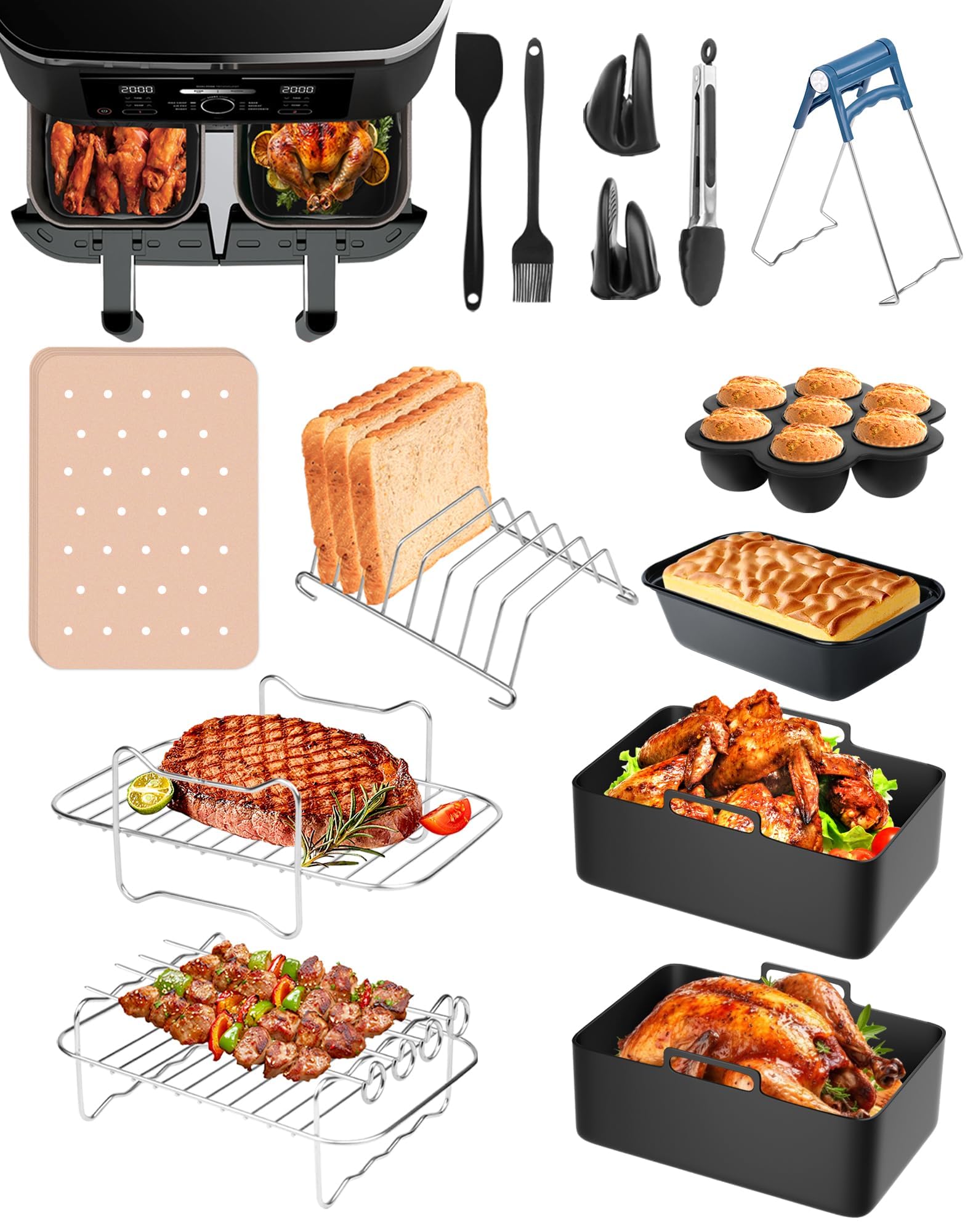 Les moules à gâteau sont dotés d'un revêtement antiadhésif en téflon, vous ne devez donc pas les essuyer avec un chiffon solide ou une boule en métal. Découvrez de nouvelles possibilités culinaires : qu'il s'agisse de collations rapides, de plats de légumes sains ou de plats principaux festifs. Cet ensemble polyvalent fait de votre Airfryer un outil polyvalent dans la cuisine. Facile à nettoyer : tous les accessoires de friteuse à air chaud pour Ninja passent au lave-vaisselle et peuvent être nettoyés à la main. Accessoire De Friteuse À Air Chaud,Accessoire Pour Friteuse À Air Chaud,Pour Ninja Foodi Af400Eu C'est pourquoi nous vous proposons les 14 pièces aBlumen Accessoires de friteuse à air chaud qui vous permettent de cuire facilement les délicieux desserts et pizzas. Le moule en silicone pour friteuse à air chaud mesure 20 x 13 x 7 cm (si votre friteuse est un autre modèle de marque, mesurez votre friteuse avant l'achat pour vous assurer de la compatibilité). Avec les accessoires pour Ninja Airfryer, vous réussirez des frites, du poulet et de délicieux desserts ! 【Résistant à la chaleur et sans BPA】 Les moules en silicone pour friteuse sont fabriqués en silicone de qualité alimentaire, réutilisables et écologiques, sans BPA, non toxiques et résistants aux taches, résistants à la chaleur jusqu'à 230 °C/446 °F, ce qui n'affecte pas le goût des aliments. Les accessoires de friteuse à air chaud pour Ninja sont parfaitement compatibles avec Ninja Foodi AF300EU (7,6 L), AF400EU (7,6 L), AF451EU (7,6 L) et toutes les friteuses à air double 7,6 L-9,5 L comme Princess 8L (182074), Innsky 8L, Emerio 9L (126674)., 2) Daey., woo DK2FRYER, etc. Les accessoires de friteuse à air chaud pour Ninja sont parfaitement compatibles avec Ninja Foodi AF300EU (7,6 L), AF400EU (7,6 L), AF451EU (7,6 L) et toutes les friteuses à air double 7,6 L-9,5 L comme Princess 8L (182074), Innsky 8L, Emerio 9L (126674 Accessoires de friteuse à air chaud : le multi-talent dans la cuisine Que ce soit des morceaux de poulet croustillants, du pain délicieux ou un gratin copieux : aucun problème pour ces accessoires polyvalents ! Le gril à friteuse est fabriqué en acier inoxydable 304, inoxydable et durable. Ensemble d'accessoires pour iteuse à Air Ninja AF500EU AF400EU AF300EU, Double pile XL SL400EU, moules/taquets/gants en Silicone/brosse ; Remboursement si le... Les Airfryers sont parfaits pour les frites et le poulet. Le moule en silicone pour friteuse à air chaud mesure 20 x 13 x 7 cm. Spécialement conçu pour Ninja Foodi AF300EU AF400EU AF451EU et la plupart des autres friteuses à air chaud double - Compatible avec la friteuse à air chaud Ninja Foodi AF300EU AF400EU AF451EU et la plupart des friteuses à air chaud double - Cet accessoire de friteuse à air chaud est parfaitement compatible avec les friteuse double de 7,6 à 9,5 l et convient également pour les plus grands Airfryer. Si les accessoires de la friteuse à air chaud Ninja sont difficiles à nettoyer, il suffit de les tremper dans de l'eau chaude pendant un certain temps et de les rincer. Air Fryer Ninja Kitchen Set D'Accessoires Pour Friteuse À Air Chaud Ninja Foodi Max Af400Eu Af300Eu,8 Pièces De Moules Ninja Foodi Pièces Détachées Nous savons qu'il n'est pas toujours facile de trouver les inserts Airfryer adaptés. L'accessoire Air Fryer peut être utilisé à des températures comprises entre -20 °C et 230 °C et convient aux friteuses, fours et micro-ondes. Accessoires Airfryer, 14 pièces, accessoires pour friteuse à air chaud Ninja Foodi AF451EU AF400EU AF300EU, accessoires Ninja AF400EU Dual Zone Airfryer Accessoires pour Innsky, Princess, Emerio 7,6 L-9,5 L. Contenu de la livraison : 14 accessoires de friteuse à air chaud comprenant 2 moules à pain en silicone, 1 support à brochettes avec 4 brochettes, 1 grille de barbecue, 1 support de grille-pain, 1 moule en silicone à 7 trous, 1 moule à pain, 100 feuilles de papier sulfurisé, 2 gants de four, 1 pince à barbecue, 1 spatule en silicone, 1 pince à barbecue, 1 pince en silicone, 1 poignée pour assiette et 1 pinceau à huile.