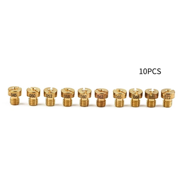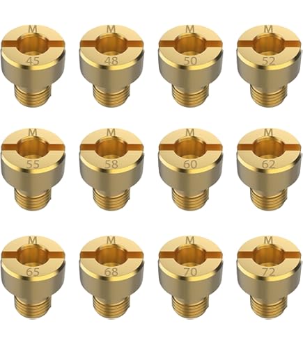 Le laiton permet une conduction thermique optimale, réduisant l'usure et assurant une longévité accrue des gicleurs pour carburateurs dans des conditions extrêmes En modifiant la taille du gicleur, vous pouvez adapter le carburateur en fonction de votre environnement ou de votre style de conduite pour maximiser la puissance ou améliorer l'efficacité énergétique. Accessoires de Maintenance : Le kit de nettoyage inclus assure que votre carburateur reste propre, maximisant ainsi la longévité du moteur. Kit Complet avec Accessoires de Nettoyage: Ce set de 15 buses comprend également un ensemble de 16 pièces pour nettoyer efficacement votre carburateur. Commodité d'Utilisation : Faciles à installer et à retirer grâce à leur conception simplifiée, idéal pour les ateliers ou les ajustements à domicile. Lot de 10 buses principales de carburateur en métal pour Performance Améliorée avec une Précision de Fabrication: Les buses carburateur m4 sont usinées avec une tolérance stricte, garantissant un ajustement parfait pour améliorer les performances du moteur. Que ce soit pour une meilleure puissance ou une gestion plus efficace du carburant, ces gicleurs sont conçus pour maximiser la performance de votre carburateur pour Dellorto ou autre 15 Pièces Gicleur Carburateur M4 Carburateur Main Jet Kit Gicleur Principal Carburateur Gicleur... Set Réparation Carburateur Moto Lot De 15 Buses De Carburateur 40 44 46 48 50 52 54 56 58 60 65 70 75 80 85 Buses De Carburateur Pour Hercules Prima 2 3 4 5 6 Puch Bing Kreidler Accessoire Carburateur Moto Scooter Polyvalence : Ce set de gicleurs est compatible avec une large gamme de moteurs et carburateurs, vous offrant un outil flexible pour une large variété de véhicules. But : Idéal pour les propriétaires de motos, scooters et autres véhicules nécessitant un entretien de carburateur précis. KIT JET PRINCIPAL carburateur facile installer pour Mikuni VM22 VM24 125 250 EUR 20,58 - PicClick FR Compatible avec de nombreux modèles et marques tels que pour Dellorto, Bing, Keihin, PWK, CVK, et GY6, ce set est parfait pour des ajustements de performance et des réparations simples. Vous pouvez ainsi facilement remplacer les buses anciennes ou défectueuses sans besoin d’outils spécialisés, ce qui facilite l'entretien en déplacement Nom du produit : Set de 15 Gicleurs Carburateur M4 4mm (40-85) avec Accessoires de Nettoyage Couleur : Laiton Quantité : L’ensemble comprend 15 tailles différentes de gicleurs M4 (40–85) ainsi qu’un kit de nettoyage de 16 pièces, essentiel pour l’entretien des carburateurs. Les gicleurs principaux sont donc accompagnés de réducteurs de déchets, permettant ainsi une maintenance rapide et une meilleure gestion des impuretés présentes dans le système d’alimentation