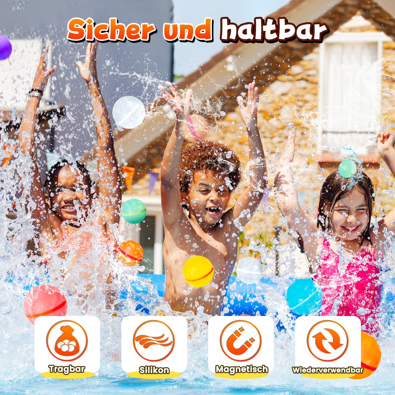 Jeu Extérieur Enfant Lot De 12 Bombes à Eau Réutilisables Silicone - Fermeture Automatique - Remplissage 3 Secondes - Sac Transport Inclus Ballons Eau écologiques