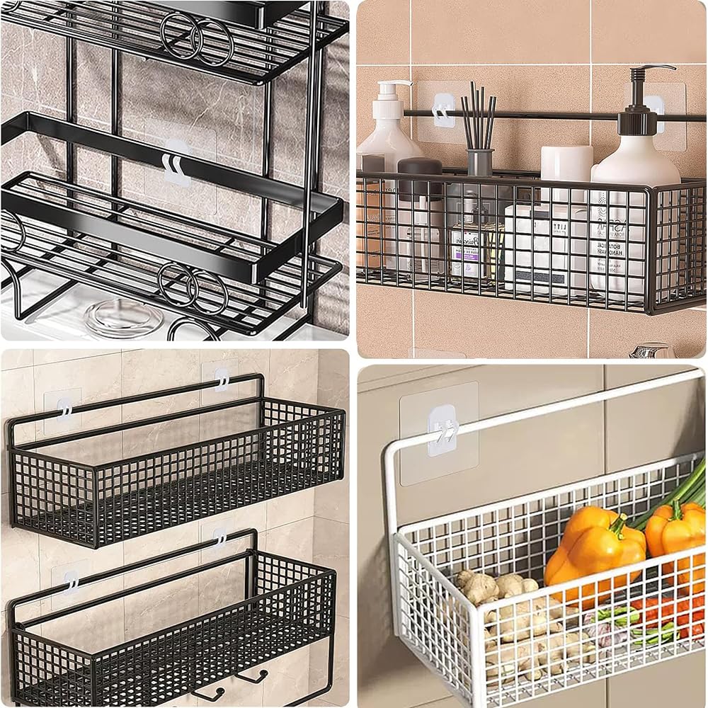 NON aux surfaces texturées/écaillées (chaux, brique, béton). Attendre 24h avant utilisation pour une résistance maximale. Les crochets adhésifs en acrylique sans trace sont un choix judicieux pour suspendre des paniers de salle de bain ou des porte-savon, ils sont pratiques et faciles à installer, adaptés à de nombreux styles d'étagères et de panier Étagères pour douche - Marque - Modèle - Résistante à la rouille - Adhésifs transparents - Sans... Matériau PVC Fiable: Base en PVC renforcé de 0., 8 mm pour stabilité sur surfaces lisses, anti-déchirure et anti-décollement. Étagère Bibliothèque - Crochets adhésifs - Support pour placard - Blanc - 2pcs - 12x4cm Étanche et résistant aux graisses, adhesion parfaite même en milieux humides/gras. Parfait pour porte-savons, étagères d'angle, rangements cuisine, paniers et articles de toilette. Etagere Adhesive Etagere Douche, Etagere Rangement De Salle De Bain, Rangement Douche, 3 Autocollants Adhésifs Crochet Adhesif Salle De Bain Surfaces Unies et Sèches Uniquement: Adhèrent sur surfaces lisses, non poreuses et sèches : carrelage, marbre, verre, bois, métal, plastique. Capacité de Charge Élevée: Avec une adhésion forte et des crochets griffes robustes, chaque paire supporte jusqu'à 10 kg. Solution sans effort pour des murs nets et organisés.