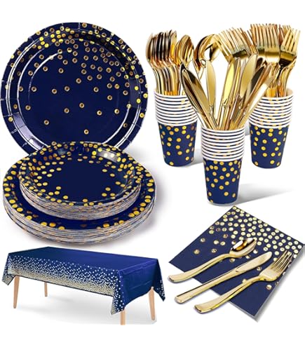 [Pratique et gain de temps] Après la fête, jetez-les sans lavage. Vaisselle jetable anniversaire fleur bleu marine 10 invités, vaisselle Vaisselle d'anniversaire or bleu foncé pour 24 invités, assiettes en papier et gobelets, pour fêtes nocturnes COUVERTS JETABLES. En 1 fois Gobelets en papier : 24 pièces * 9 oz. Assiettes colorées, serviettes, gobelets en carton et pailles platine créent une harmonie avec les décorations, émerveillant les invités. Serviettes en papier : 24 pièces * 6., 5 pouces. Assiettes à dessert : 24 pièces * 7 pouces. Pour toute question ou problème, contactez-nous sur Amazon : notre service client est prêt à vous aider avec des solutions efficaces. Détails de l'ensemble d'assiettes: Contenu : pour 24 personnes, total de 193 pièces. Vaisselle Jetable Nouvel An Vaisselle Jetable Anniversaire Fête, 24 Invités Kit 7Inch Vaisselle Jetable Garcon Papier Invitation Anniversaire Fille 24 pièces de couverts de fête en bois : 24 fourchettes en bois, 24 cuillères en bois, 24 couteaux en bois. Assiette Jetable Vert Sauge Kit, 24 Invités Kit Vaisselle Jetable Anniversaire Fille Garcon... Pratique et rapide pour un usage unique. [Adapté à de multiples occasions] Idéal pour anniversaires, mariages, buffets, dîners familiaux et diverses activités, ainsi qu'en cadeau de Noël. Vaisselle réutilisable: Assiettes plates : 24 pièces * 9 pouces. 24 pièces par article, adapté à 24 personnes. Une vaisselle élégante et fonctionnelle maintient l'espace ordonné, augmentant la joie de la fête. Fabriqués en papier alimentaire, ces articles sont biodégradables, résistants à la déchirure et à la rupture. [Design élégant et splendide] Sur fond coloré, l'ensemble présente des motifs dorés à feuille. Occasion : fêtes d'anniversaire, mariages, enterrements de vie de garçon, cocktails, remise de diplômes, Thanksgiving, Noël, Halloween, anniversaires, vacances.
