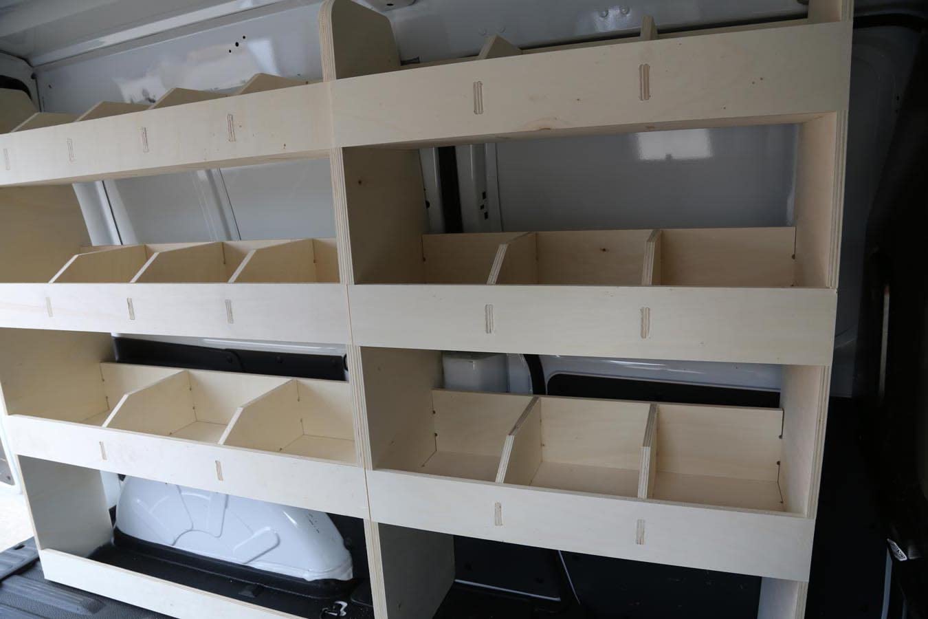 Compartiments Rangement Outils Pour Renault Kangoo Maxi 2008-2020 (Empattement Long L2-H1) Rails De Aménagement Intérieur Fourgon Professionnel L’assemblage ne prendra que 10 minutes. Découpés spécifiquement pour être placés contre le profil latéral d'une camionnette Kangoo Maxi L2 2008 ces étagères augmentent la capacité de votre camionnette sans compromettre l'espace au sol Aménagement interne Kangoo Renault Renault Kangoo Maxi Spécifications des rayonnages pour fourgons Modèle de Véhicule: Renault Kangoo Maxi L2 (Maxi) 2008+ Emplacement: côté intégral conducteur et côté passager arrière Nombre d'étagères: 3 Dimensions: côté arrière passagerL 1000mm x l 300mm x H 1180mm3 étagères comprenant 12 compartiments de rangement côté avant conducteurL 650mm x l 300mm x H 1180mm3 étagères comprenant 9 compartiments de rangement côté arrière conducteurL 1000mm x l 300mm x H 1180mm3 étagères comprenant 12 compartiments de rangement LIVRAISON GRATUITE ET RAPIDE - Toutes commandes de rayonnages pour fourgon reçues avant 14h, du lundi au vendredi, seront expédiées le jour même pour une livraison rapide et gratuite. Rangement Utilitaire Fourgon Étagères VANIFY Pour Renault Kangoo Maxi L2 2008+ - Côté Conducteur - 3 étagères 12 Compartiments - Installation Facile Amenagement Utilitaire ROBUSTE - Conçues pour résister à une utilisation quotidienne intensive. Système d’étagères conçu pour s'adapter aux fourgons Renault Kangoo Maxi. Un système complet d'étagères pour fourgon permettant de maximiser pleinement la capacité de stockage de votre véhicule. Spécifiquement conçues pour s'adapter aux contours latéraux d’un fourgon Kangoo Maxi L2 (Maxi) 2008+ ces étagères vous permettent d’augmenter la capacité de stockage de votre véhicule sans sacrifier l'espace au sol. 9 étagères et 33 compartiments de rangement dotées de compartiments spacieux pour stocker, organiser et accéder facilement à tous vos outils, équipements et accessoires. Organisez et rangez facilement tous vos outils, fournitures et équipements grâce aux multiples compartiments de rangement. CONVIENT À UN VEHICULE RENAULT KANGOO MAXI L2 (Maxi) 2008+ Rayonnages pour fourgons spécialement conçus pour s'adapter au profil latéral d'un véhicule RENAULT KANGOO MAXI. Comprenant 3 étagères modulaires, 2 pour l’intégralité du côté conducteur du fourgon et une pour le côté passager.