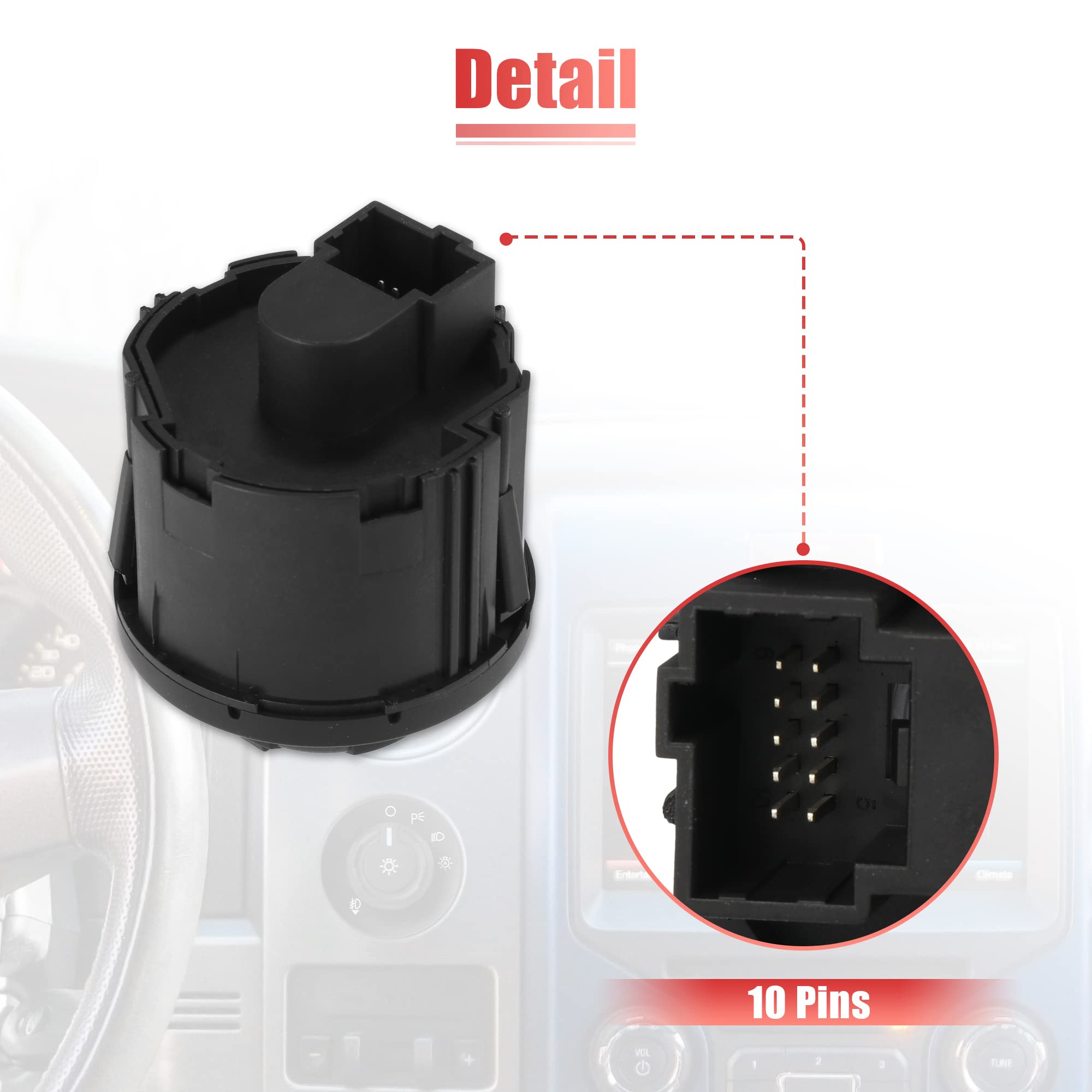 Interrupteur de phare à 9 broches, pour Ford F-150 F-250 F-350 Ranger Bronco Explorer Aerostar E150 E250 E350 E450 E550 E7TZ-11654A Pièce Auto Ford éclairage Interrupteur De Phare Pour Ford F-150 2009-2014 F-250 F-350 F-450 F-550 Super Duty 2011-2019, Interrupteur De Commande De Phare Pièce Auto F-150 2009-2019 Contrôle fluide du système d'éclairage: Ce commutateur de commande des phares pour tableau de bord offre une commande fiable de l'éclairage de votre véhicule. Il permet de passer facilement d'un mode à l'autre, améliorant ainsi la sécurité en conduite de nuit ou par faible luminosité. Idéal pour remplacer les interrupteurs défectueux: ce module de commande d'allumage et d'extinction des phares est idéal pour rétablir l'éclairage complet après l'usure d'un bouton ou une panne de circuit. INTERRUPTEUR AVANT FIABLE pour Ford F150 F250 F350 F450 F550 1999 2002 EUR 24,61 - PicClick FR Il améliore la visibilité et permet de garder le contrôle par mauvais temps, dans les tunnels ou sur les routes de campagne. Application pour les modèles avec phares automatiques avec interrupteur antibrouillard. Demande pour Ford F-150 2009-2019, F250/F350 2011-2019, F450/F550 2011-2016 Compatibilité : for F-150 F250 F350 F450 F550 Réponse rapide de l'éclairage à la demande: Ce commutateur d'éclairage pour phares de véhicule s'active rapidement à chaque pression ou rotation.