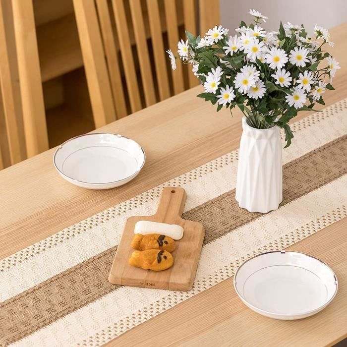 Parfait pour votre décoration rustique, grange, forêt, vintage, mariage champêtre, décoration de table de ferme ou toute autre occasion spéciale. Ce chemin de table bleu sarcelle a un motif de texture en bois de style ferme avec des couleurs vives et vintage, ne se décolore pas et ne saigne pas. Idéal pour correspondre à n'importe quelle table à manger et vaisselle, rend votre repas en famille et entre amis plus amusant et rituel. 5 COULEURS AU CHOIX : Kaki, bleu, noir, gris, vert. Évitez toute exposition prolongée au soleil !, Ne pas javelliser. Design d'impression]:Ces chemin de table tissu de style vintage sont décorées de rayures de couleurs mélangées et de motifs de couronnes de feuilles home sweet home imprimés aux deux extrémités, avec une sensation simple et un charme bohème, apportant un nouveau look à votre table LOMOHOO Chemin de table beige en faux lin rustique creux 【Premier material】Le chemin de table rétro est fabriqué en coton et lin, contrairement au tissu ordinaire, ce tissu de haute qualité est épais et texturé, durable, résistant à la chaleur, pour une utilisation en toutes saisons. 【Facile à nettoyer】:Il est facile à entretenir et à entretenir., Lavable en machine. 【Convient pour la scène】: Ce produit est polyvalent et peut être utilisé comme décoration de table, tapisserie ou art mural brodé à suspendre, selon ce qui est le mieux adapté. 13 x 72 pouces (33 x 183 cm). Chemin De Table Moderne En Coton Et Lin Blanc Crème - Décoration De Décoration Table Champêtre Style Ferme Chemin de table lin naturel 5m - 500gr/m² - 20cm REMARQUE Veuillez permettre une erreur de 1 à 2 cm en raison de la mesure manuelle et l'image peut ne pas refléter la couleur réelle en raison des différences d'affichage du moniteur et d'effet de lumière. Complétez votre table avec ces chemins de table durables tout en se fondant définitivement dans le magnifique look de la ferme. 【Taille et couleur】:Chemin de table de ferme en deux tailles adapté à la plupart des tables rectangulaires, rondes ou carrées et peut accueillir 6 à 8 personnes. Description du produit Fabriqués à partir de tissu de qualité supérieure, ces chemins de table ont été soigneusement conçus pour un attrait charmant. Cela fait un cadeau attentionné pour la fête des mères, Noël, les anniversaires, la pendaison de crémaillère, les vacances, les fêtes, les réunions de famille, les mariages, les douches, Pâques et plus encore. Il est également parfait pour une utilisation dans la chambre, le salon, l'extérieur, dans le jardin ou dans la cuisine, il égayera l'atmosphère autour de la maison., Idéal pour Noël.
