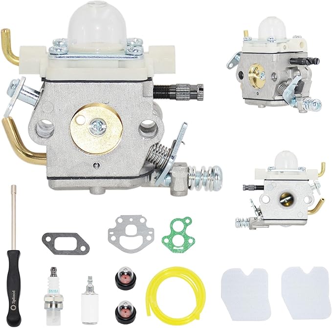 Caractéristiques : * Compatibilité : ce carburateur est conçu pour remplacer les numéros de pièces C1M-K77 et C1M-K76, assurant un ajustement parfait pour divers modèles de souffleurs de feuilles ECHO, y compris PB403H, PB403T, PB413H et PB413T. Le carburateur pour C1M-K77 est un composant essentiel pour les modèles PB403H, PB403T, PB413H, PB413T et PB460LN. Il assure un mélange optimal d'air et de carburant pour un fonctionnement efficace des moteurs de ces appareils * Emballage complet : chaque colis comprend non seulement le carburateur, mais également des composants essentiels tels qu'un filtre à air, des joints, un filtre à carburant, des ampoules d'amorçage, une étincelle, des conduites de carburant, un œillet et une rondelle, fournissant tout ce dont vous avez besoin pour l'installation. 021000891 A021000892 A021000893 A021000894 A021000773 A021000772 A021000771 Nombre de pièces : 1 lot. Processus d'installation facile : conçu pour une installation simple, les utilisateurs peuvent rapidement remplacer leurs anciens carburateurs sans aide professionnelle, ce qui rend l'entretien accessible et rentable. KIPA Kit d'entretien de carburateur pour souffleurs Echo PB-403H PB-403T PB-413H PB-413T PB-460LN PB-461LN PB-610 PB-620 PB-620H PB-620ST PB413 PB-400 Remplace ZAMA C1M-KK1K00 77 C1 M-K76 C1M-K49A C1M-K49B A021000890 *Facilité d'installation : conçu pour une installation simple, ce carburateur permet aux utilisateurs de remplacer rapidement leurs anciennes unités sans avoir besoin d'aide professionnelle, ce qui permet d'économiser du temps et de l'argent. Contenu de l'emballage : 1 kit de carburateur. Fiable pour plusieurs modèles : en plus des modèles énumérés, ce carburateur sert de remplacement fiable pour les souffleurs de feuilles des séries PB 610 et PB 620, améliorant l'efficacité de votre équipement. *Contrôle de compatibilité : pour garantir une performance optimale, il est crucial de vérifier la compatibilité avec votre modèle spécifique avant de commander, car ce carburateur ne convient pas pour ECHO PB-580T. Saihisday C1M-K76 Carburateur avec kit de réglage pour souffleurs Echo PB-400 PB-610 PB-620 PB-620H PB-620ST PB-602 PB-603 PB-610 PB-611 Series PB-403H PB-403T PB-413H PB-413H PB-413H 413T Pp B-460LN Taille : comme sur l'image., Couleur : voir photo. Carburateur avec Joint et Pompe d’Amorçage pour Souffleur ZAMA C1M-K77...