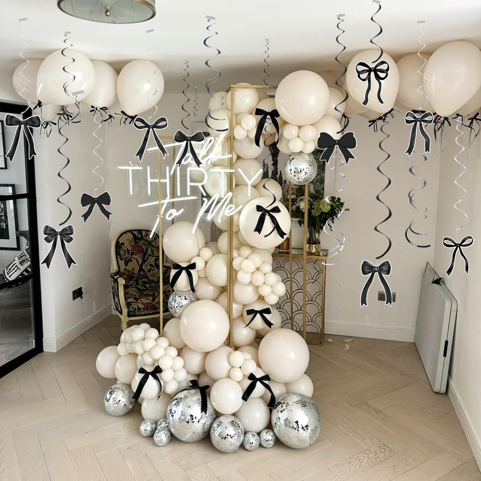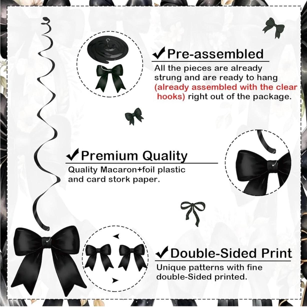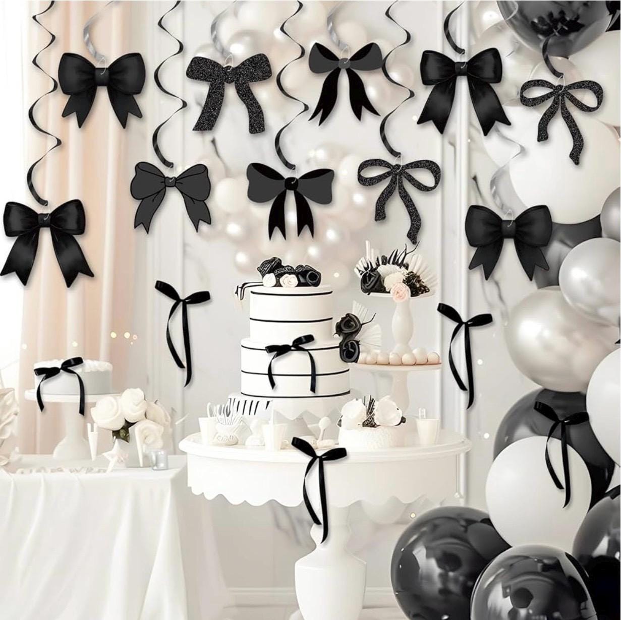 Notre guirlande de nœuds rendra votre fête fascinante et plongera votre famille et vos amis dans une expérience inoubliable Cet ensemble de décorations d'anniversaire à nœuds apportera beaucoup de joie et de beaux moments à la fête d'anniversaire, à la fête de mariage, à la fête d'enterrement de vie de jeune fille, à la fête de bébé Vous recevrez : 3 x Décorations murales avec nœud noir Déco Anniversaire Mariage YTHETM Décorations De Fête En Forme De Nœud Noir : 8 Pcs Guirlande De Nœuds Noirs Pour Filles Femmes Fête Prénatale Mariage Enterrement De Vie De Jeune Fille Fournitures De Fête Déco Fête Nœud Tendance Polyvalente : Cette arche géante est idéale pour les mariages, les anniversaires, Noël et la décoration murale, apportant une touche d'élégance à toutes les occasions Promo Le Poinsettia Pailleté Sur Clip, La Guirlande, La Boule... Décorations de nœuds surdimensionnées, ornements de nœuds
