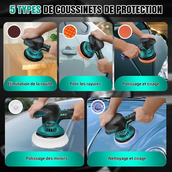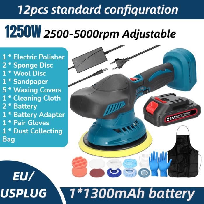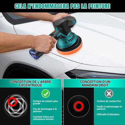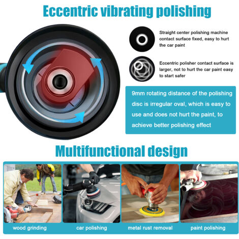 Grâce à la valve d'air réglable, vous pouvez ajuster librement le flux d'air en fonction de la situation de travail et ainsi obtenir des performances optimales à chaque utilisation. Cela assure des performances élevées et un contrôle précis lors du meulage, du polissage, du cirage de voiture et d'autres travaux, vous permettant ainsi de répondre facilement à différents besoins de travail. Contenu de l'emballage : 1 polisseuse., 1 buse d'air., 30 papiers abrasifs., 21 éponges. Consommation d'air : 4 cfm. Description: La polisseuse sans fil pour voiture est un petit broyeur efficace pour le traitement du véhicule et le ponçage de précision. Contenu du kit : ce kit de polisseuse sans fil pour voiture contient de nombreux accessoires, dont : 1 polisseuse, 1 buse d'air, 30 papiers abrasifs, 21 éponges, 1 outil de démontage, 1 ponceuse, 3 compartiments de rangement et 6 étagères à brosses. Le système pneumatique efficace augmente efficacement l'efficacité du travail, ce qui vous permet d'effectuer plus de tâches en peu de temps et de réduire les pauses et les ajustements inutiles. Il est adapté à différents matériaux de surface, offre plus de flexibilité et répond à différents besoins de fonctionnement. Que ce soit pour le cirage et le polissage quotidiens de votre voiture ou lors du ponçage et de la réparation de machines lourdes, cette polisseuse de voiture sans fil offre un travail précis et d'excellents résultats. Elle convient à tous les utilisateurs, que ce soit un professionnel ou un débutant, et permet un démarrage facile et une plus grande efficacité de travail. Polisseuse Pneumatique Professionnelle FS30 – Ponceuse électrique En Ligne Pneumatique, Machine à Polir Le Papier De Verre, Pour La Beauté Et Le Traitement De La Voiture Polisseuse électrique Excentrique Pour redonner un éclat neuf à votre voiture, la ponceuse polisseuse est l'outil idéal. Que ce soit pour enlever les rayures, les imperfections ou pour polir la carrosserie, cet outil polyvalent vous permettra d'obtenir un résultat professionnel Ainsi, le flux d'air et la vitesse de polissage peuvent être ajustés selon les besoins pour assurer un ponçage et un polissage précis. 1. **Design ergonomique** : la polisseuse électrique sans fil dispose d'une poignée ergonomique qui offre une prise en main confortable, réduisant la fatigue de la main lors d'une utilisation prolongée. Son faible bruit et son fonctionnement à faible vibration garantissent une expérience de polissage fluide sans perturber votre environnement. 2. **Vitesse réglable Diamètre minimum du tuyau : 8 mm ou plus. 1 outil de démontage., 1 ponceuse., 3 plateaux de rangement. Pression de service : 6,3 kg., Poids : environ 0,98 kg., Longueur : 160 mm. Polisseuse de voiture excentrique sans fil, 8 vitesses, polisseuse De plus, le petit pneumatique est conçu de manière ergonomique : il tient bien dans la main, est facile à utiliser, réduit la pression de la main et convient à une utilisation à long terme. Grâce à la technologie pneumatique avancée, le kit de polissage de voiture offre une puissance stable, réduit la fatigue et ne surchauffe pas facilement même après une utilisation prolongée. Grande stabilité : la mini polisseuse de voiture est équipée d'une sortie NP de 1/4 et d'une valve d'air réglable. Elle dispose d'un raccord NP de 1/4 et d'une valve d'air réglable.