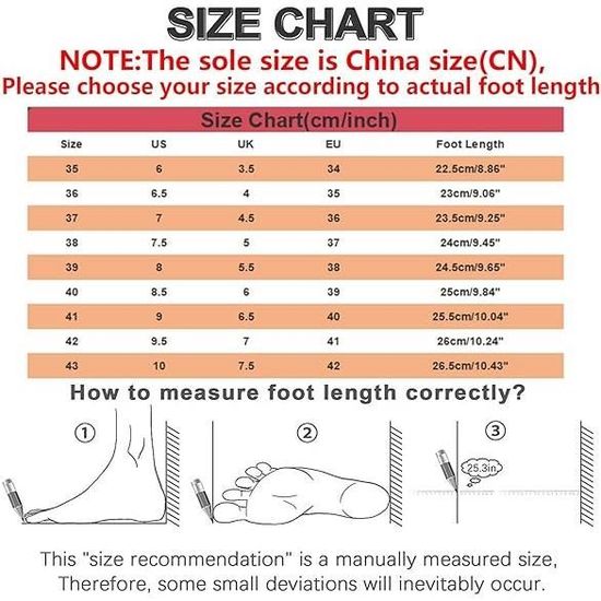 ✔ MATÉRIAU DE QUALITÉ - Les sandales décontractées à talons bas sont constituées d'une tige en PU durable et d'une semelle extérieure antidérapante, leur conception légère et respirante apporte confort et fraîcheur à vos pieds. ✱ Conception : sandales d'été adaptées à la marche des femmes. Sandales Noires Taille 39 Chaussure Orthopédique Femme Pied Large Avec Scratch Ete, Sandales Compensées Femme été Confortable Bout Ouvert Sandales De Plage Vacances Sandales Plats Confortables(Size:EU 35,Color:Apricot Sandales Réglables Scratch Sandale orthopédique en cuir noire | Distribution Dominique Lemay ✔ DESIGN PARFAIT - Ces sandales plates bohèmes ont des boutons à crochet réglables pour mieux s'adapter à vos pieds. ✔ Sandales de marche confortables – Nos sandales orthopédiques sont conçues pour s'adapter à la voûte plantaire de votre pied, avec des talons profonds et des surfaces en pointillés qui réduisent la friction et aident à maintenir la bonne position du pied. La fermeture Velcro est également facile à mettre et à enlever. ✔ Structure compensée raisonnable – Sandales compensées orthopédiques pour femmes avec une structure de support raisonnable qui s'adapte parfaitement aux pieds, apportant un confort de marche et réduisant le stress sur les articulations du pied et des jambes, et peuvent être portées toute la journée. MATÉRIAU DE QUALITÉ - Les sandales décontractées à talons bas sont constituées d'une tige en PU durable et d'une semelle extérieure antidérapante, leur... ✱ Ajustement parfait : cette sandale pour femme confortable et légère convient à différentes formes de pieds. Sandales compensées à plateforme pour femmes, légères, avec bride élastique à la cheville, sandales de marche confortables à enfiler, chaussures décontractées Caractéristiques Couleur: Rouge Abricot Noir Poids net : 363 g-452 g (taille 36-41) Matériau supérieur: PU Matériau de la doublure : doublure en microfibre Éléments populaires : boucle, bretelles réglables. Hauteur du talon : Talon compensé Caractéristiques ✱ Matériau : dessus en PU.