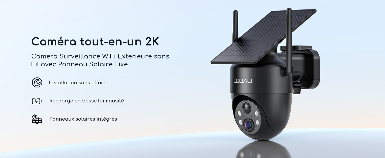 Compatible avec Alexa, la camera solaire s'intègre facilement à votre maison connectée et vous permet de surveiller votre domicile à distance. 【 Vision HD 2K 360° PTZ & 0 Angle Mort 】 Cette camera exterieur 2K HD capture des images nettes, même en contre-jour, grâce à sa technologie d'équilibre des couleurs. 【 Wi-Fi 6 & Appairage Bluetooth 】Profitez d'une connexion Wi-Fi 6 ultra-rapide, offrant une transmission vidéo 40% plus fluide que le Wi-Fi 5., L'installation se fait en quelques secondes grâce à l'appairage Bluetooth instantané, pour une mise en service simple et sans contrainte. Couleurs vives la nuit Identifiez sans erreur, même dans le noir La couleur d'un vêtement ou d'un véhicule devient une information cruciale pour votre sécurité 2K 3MP Camera Surveillance WiFi Exterieure sans Fil, ieGeek 15m Vision Dites adieu aux tracas : pas de panneaux supplémentaires, d'installation complexe, de câbles encombrants, ni de soucis de consommation d'électricité ! Elle n'est pas compatible avec la série COOAU Homebase ni avec l'application ARCCTV ieGeek 2K 3MP Camera Surveillance WiFi Exterieure sans Fil, 15m Vision Nocturne en Couleur Batterie avec Panneau Solaire, Détection Humaine PIR, Audio Bidirectionnel, Alarme Sonore et Lumineuse En cas de mouvement suspect, elle active automatiquement un système de dissuasion efficace : sirène puissante, projecteur LED, ou les deux pour éloigner tout intrus. Clarté exceptionnelle 2K La preuve par l'image, tout simplement Avec la précision 3MP, obtenez une preuve visuelle claire et irréfutable en toute situation 1 Autonomie ultra-longue 2 Connexion ultra rapide 3 Liberté d'installation 4 IP66 anti-intempéries 5 + Panneau Solaire Externe Dotée d'une technologie avancée de panneaux solaires BC, son efficacité de conversion énergétique est supérieure de 30% à celle des modèles standards. 【 Installation simplissime, connexion inébranlable 】 Avec sa conception tout-en-un, la caméra de surveillance extérieur COOAU allie élégance et fonctionnalité. Alertes instantanées Obtenez des alertes nocturnes en temps réel La caméra détecte et signale aussitôt les activités nocturnes pour une protection toujours réactive Reconnaissance précise Identifiez chaque intrusion grâce à l’IA avancée Recevez des alertes seulement lors d’intrusion, surveillance fiable et sans distraction 100% Solaire, 100% Sans Fil ] La caméra extérieur solaire COOAU vous simplifie la vie !Dotée d'une technologie avancée de panneaux solaires BC, son efficacité de conversion énergétique... [ Vision HD 2K 360° PTZ & 0 Angle Mort ] Cette camera exterieur 2K HD capture des images nettes, même en contre-jour, grâce à sa technologie d'équilibre des couleurs. Trois modes de... 【 Détection Intelligente PIR & Interaction à Distance 】Équipée d'un capteur PIR intelligent, cette camera surveillance wifi distingue avec précision les vraies intrusions des fausses alertes, réduisant les déclenchements inutiles. Camera Solaire Camera Surveillance WiFi Galayou Exterieure Sans Fil Batterie - Panneau Caméra étanche IP66 Attention : Cette caméra est uniquement compatible avec l'application COOAU Cam. 1 Vidéosurveillance HD 2 Vision panoramique 360° 3 Vision couleur nuit/jour 4 Protection totale la nuit 5 Détection intelligente AI Trois modes de vision nocturne (couleur, noir et blanc, intelligent) éclairent jusqu'à 15 mètres pour une surveillance claire dans l'obscurité. Équipée d'antennes doubles 4dBi et d'un WiFi 2,4GHz haute performance, le signal est boosté de 30 %, et la connexion reste fluide même dans les recoins du jardin. Nos panneaux solaires BC captent l'énergie même à l'ombre ou par temps couvert. 1 Au service des familles 2 Support technique expert Le zoom numérique 4x vous permet de voir clairement les visages à distance. COOAU offre 2 ans de garantie (activation de la carte de garantie requise) et un support par e-mail réactif sous 24h. Description du produit COOAU - Technologie WiFi 6 - Charge Faible Luminosité - Surveillance 24h/24 ! 30 % plus performants qu'un panneau classique, ils assurent une alimentation continue à votre caméra. Avec l'application intuitive COOAU Cam, gérez et visualisez jusqu'à 4 caméras en même temps sur un seul écran, et partagez l'accès avec votre famille en temps réel. INSTALLATION ULTRA SIMPLE : UNE CAMÉRA TOUT-EN-UN Elle s’installe en quelques minutes, sans effort ni complication d'installation traditionnelle Si votre emplacement manque de soleil (sous les avant-toits ou à l’ombre), contactez support-eu(a)cooau.