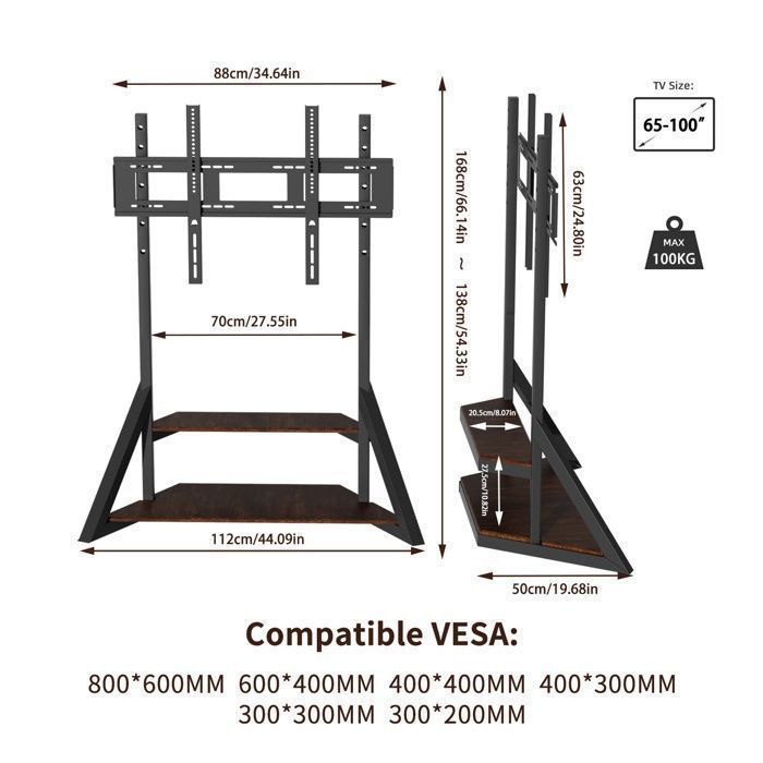 UNHO SUPPORT TV SUR PIED EN STOCK : UNHO Support TV sur Pied de 65 à 100 Pouces Meuble TV Pied Universel avec 2 Étagères en Bois Hauteur Réglable pour Télé Écran LED OLED LCF Charge 100kg - Max VESA 800x600mm, U-Z1188-MN pas cher. Livraison rapide partout en France Avec roues Vous êtes libre d'installer les roues comme vous le souhaitez ! Les deux étagères en bois massif peuvent chacune accueillir jusqu’à 50 kg, idéal pour une console, des haut-parleurs ou un décodeur. Facile à déplacer pour s’adapter à tous vos besoins de visionnage. Support TV Sur Pied Avec Roulettes Support TV Sur Pied - Pied TV Universel 32-100 Pouces Avec Roulettes - Hauteur Réglable Charge 80kg VESA 800x600mm - TV Son Photo Pied Television 2 Étagères en Bois Massif IIs peuvent supporter une charge de 50kg sans déformation, permettant de poser une console, des accessoires ou de haut-parleurs, DVD ou le décodeur près du téléviseur Design Élégant et Fonctionnel – Les étagères en bois apportent une touche esthétique tout en offrant un large espace de rangement. Installation rapide avec notice incluse. Hauteur Réglable Ce support TV peut être réglé à une hauteur de 138 à 168 cm, Cela contribue à améliorer votre confort visuel et à parfaire la décoration. RFIVER Support TV roulettes Chariot Meuble TV Pied Plasma-LCD-LED de 23 Il s’adapte à de nombreuses marques et garantit une excellente expérience visuelle. Meuble TV avec grande capacité de rangement et roulettes pivotantes pour une utilisation flexible. Surface en bois d'ingénierie lisse, résistante, stable et résistante à l'humidité