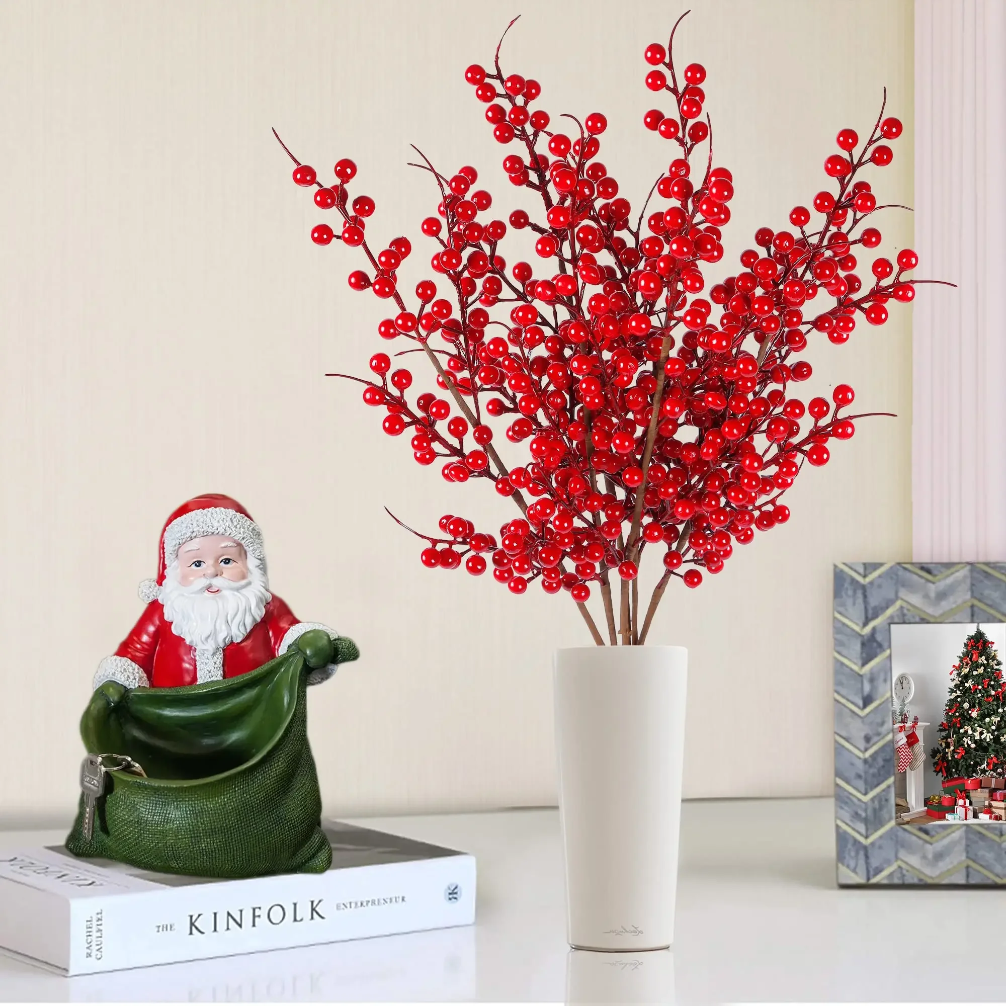 La combinaison classique de couleurs rouge et blanc en fait la décoration parfaite pour toutes les célébrations et occasions hivernales Épicéa artificiel de 88 cm avec baies rouges et boules, guirlande de Guirlande de baies de Noël : la guirlande de Noël artificielle de baies rouges mesure environ 180 cm de long, la guirlande classique de baies rouges est belle et épaisse, ce qui rend votre décoration plus charmante et accrocheuse Légers et durables, ils résistent à la décoloration et à la déformation Chaque grenade mesure environ 1 cm de diamètre, ce qui les rend idéales pour toute décoration de Noël afin de rehausser vos décorations festives Ces baies de houx de Noël sont également parfaites pour décorer votre sapin ; placez-les sur les branches pour une ambiance festive. Idéales pour le bureau, la maison, les showrooms, les hôtels, les bars, les cafés, etc. Elles peuvent aussi servir d'accessoires ou d'éléments de photographie Utilisation polyvalente : Baies de houx artificielles peut également être intégré dans des couronnes, des centres de table festifs, des vitrines, etc. Contenu de l'emballage : Cet ensemble comprend 16 grappes de baies rouges de noël artificielles, chacune contenant environ 17 grenades. Centre De Table Noël Mariage 16 Pièces Baie Rouge Deco Noel Avec Neige Artificielle Houx Artificiel Branches Houx Neige Decoration