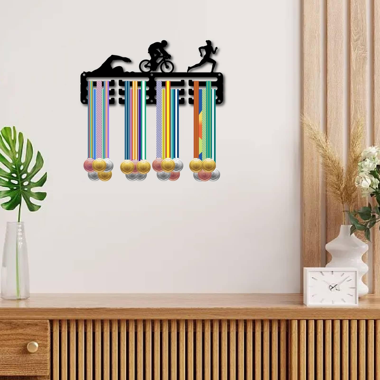 INSTALLATION FACILE: ① Marquez les emplacements des vis avec un crayon. TAILLE DU CINTRE POUR MÉDAILLES DE COUREUR : Cintre pour médailles de coureur * 1 pièce: 11., 4 x 5., 1 pouces (29x13 cm), trou: 0., 2 pouce (5 mm), vis * 6 pièces et chevilles * 6 pièces, avec coffret cadeau * 1 pièces. MATÉRIAU EN FER DE QUALITÉ: Le porte-médailles de course est en fer de haute qualité, butée antidérapante intelligente, surface ferme et lisse, pas d'arêtes vives. 3 rangée de crochets séparés, super capacité de chargement jusqu'à 5 kg/11 lb, accrocher plus de 40 médailles Médailles Course à pied et Running - Nombreux modèles à petits prix... (REMARQUE: veuillez laisser un peu d'espace entre le mur et les vis pour éviter que le crochet du porte-médaille ne s'accroche au mur. CREATCABIN Porte-médailles d'athlétisme en fer à 3 rangées pour faciliter l'accrochage des médailles) CADEAU SIGNIFICATIF: Le porte-médailles de course à pied n'est pas seulement un organisateur de médailles peu encombrant, mais aussi un excellent ajout à votre maison, Bureau, salon, ou chambre. Cadeau Sportif Crochets Support 5 Kg CREATCABIN Porte Médailles Sport Crochets Pour Médailles Natation Présentoir Pour Récompenses Course Natation Lanière Rubans Petit Cadre Fer Fixer Mur Pour Compétition Nageur Victoire Course 29x13cm Support Médailles Décoration MATÉRIAU DE HAUTE QUALITÉ: Le présentoir porte-médailles de course est en fer de haute qualité, 3 rangée de crochets séparés, super capacité de chargement jusqu'à 5kg/11lb, accroche plus de 40 médailles, butée antidérapante intelligente, surface ferme et lisse, pas d'arêtes vives. PORTE-MÉDAILLE DE RUNNING: Le porte-médailles est conçu sur le thème du trail. Il peut être utilisé pour accrocher des médailles ou des badges de course.