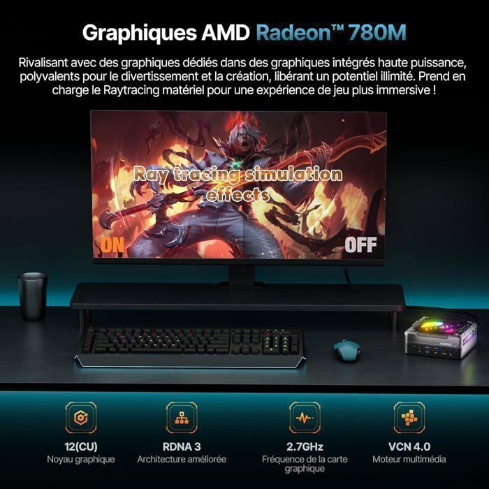 De plus, il dispose de 32 Go de mémoire DDR4 et de 1 To de stockage. Performances exceptionnelles : L'ORIGIMAGIC A1 est équipé d'un processeur Ryzen 7 7840HS série 7000, basé sur l'architecture Zen 4, avec 8 cœurs et 16 threads, une fréquence maximale de 5,1 GHz, 16 Mo de mémoire vive, une consommation de 45 W et la prise en charge de la technologie de virtualisation 1 Ryzen 7 7840HS 2 Meilleures performances 3 Fonctionnement stable 4 SSD Pour les créatifs, l'inspiration ne peut être limitée par les performances de l'appareil. Connexion sans fil haut débit : le mini-PC Origimagic A1 intègre un module réseau sans fil AX210, prenant en charge le protocole Wi-Fi 6E et le Bluetooth 5., 2., Lorsque vous jouez, les technologies Wi-Fi 6E et Bluetooth 5., 2 du mini-PC N1 garantissent des connexions réseau et périphériques stables, vous permettant de vous immerger dans un univers de jeu captivant et d'oublier tous vos soucis. Interfaces riches : ce PC A1mini dispose d'une variété d'interfaces pratiques, telles que 1 interface TYPE-C prenant en charge USB4, 2 interfaces USB 3., 2 Gen2 USB (Type-A) 10 Gbit/s, 2 interfaces USB 2., 0 480 Mbps, 1 interface DP 4K 60 Hz, 1 interface HDMI 2., 0, 1 interface Ethernet RJ45 2,5 Gigabit, 1 interface audio combo 3,5 mm, etc. Performances exceptionnelles : L'ORIGIMAGIC A1 est équipé d'un processeur Ryzen 7 7840HS série 7000, basé sur l'architecture Zen 4, avec 8 cœurs et 16 threads, une fréquence maximale de 5,1 GHz, 16 Mo de mémoire vive, une consommation de 45 W et la prise en charge de la technologie de virtualisation. ACEMAGICIAN Mini PC Gaming AMD Ryzen 7 8845HS (jusqu'à 5,1 GHz Réactivité optimale : le mini-PC A1 est équipé d'une carte graphique Radeon Graphics (Radeon RX Vega 8) avec une fréquence dynamique maximale de 2,0 GHz. Accessoires de mini PC Il vous permet de communiquer avec vos clients internationaux par visioconférence et, simultanément, de sauvegarder vos données en arrière-plan, ce qui est fluide et sans interruption, améliorant ainsi votre efficacité au travail et vous facilitant la gestion de vos affaires. ASUSVivobook S 16 OLED M5606WA-MX007W, Ordinateur portable, avec ecran... Pc Bureau Um780 Xtx Mini Pc, Amd Ryzen 7 7840Hs,8C-16T, Jusqu'À 5.1Ghz, 32Go Ram Mini Pc Gaming Le miniPC A1 vous permet de gérer facilement le multitâche.