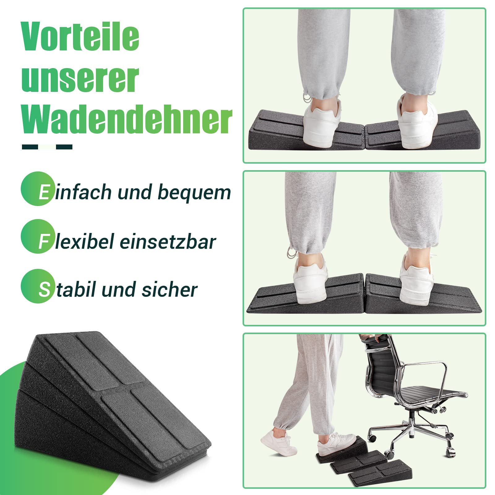 Contenu : 1 extenseur de mollet. Il peut aider à soulager les douleurs dans les muscles du mollet causées par une position debout prolongée, la marche ou la course, les étirements du mollet et soulager les problèmes tels que la tendinite d'Achille, la fasciite plantaire, la sciatique, le dos des cuisses tendus et les douleurs au talon., 3., Utilisez le kit d'extension du mollet pour la physiothérapie, le yoga, l'étirement et l'entraînement. La cale d'étirement du mollet et la sangle de yoga offrent un soutien parfait pour votre santé., Remarque : 1., Les mesures étant prises à la main, les tailles indiquées peuvent varier de 1 à 2 cm. La planche d'étirement du mollet est légère, peu encombrante et facile à transporter, les cales d'étirement de mollet et la sangle de yoga offrent un soutien parfait pour votre santé. Utilisation polyvalente pour la rééducation et le sport, étirement du mollet, idéal pour la physiothérapie, le yoga, l'étirement, l'entraînement de course et plus encore – Soutient en cas de problèmes tels que l'épine calcanéenne, les douleurs au tibia ou les mollets raccourcis. Mousse EVA Antidérapante Extenseur Du Mollet : Planche Pour étirement Du Mollet, Cale Cale Inclinée Mollet L'étirement de mollet incliné est réglable sur plusieurs niveaux (par exemple B. Slant Board pour étirement du mollet. Nom du produit : Nom : étirement de mollet., Coloris : noir., Matériau : EVA. Améliorez votre expérience de yoga avec notre produit bien pensé. Plan Incliné étirement Mollet Cheville Planche Inclinée Réglable, Planche Pour étirement Mollet... Cale d'étirement de mollet., 1., Cette cale d'expansion du mollet est fabriquée en mousse EVA haute densité avec un design de surface antidérapante qui offre une stabilité extra ferme et assure la sécurité lors de l'utilisation comme bloc de cale de squat ou bascule de pied., 2., L'étirement du mollet est spécialement conçu pour l'entraînement des muscles du mollet. Dimensions : 43,5 x 16,5 x 8 cm Coloris : noir., Style : longues rayures. Planche Slant pour étirement du mollet. Assurez-vous que cela ne vous dérange pas avant de commander. Planche inclinée en bois (3 niveaux) - Extension des mollets. Vous recevrez une planche inclinée en bois de qualité studio qui vous permettra d'étirer facilement vos mollets, de renforcer vos chevilles et d'améliorer la flexibilité de votre musculature Planche D'inclinaison Pour Mollet F Fityle Planche Inclinée Professionnelle En Bois - Étirement De Mollet Planche D'inclinaison Réglable Entraînement efficace du mollet : avec cette planche Slant Board, vous étirez de manière ciblée vos muscles du mollet, tendon d'Achille et fascia plantaire, renforcez la liberté de mouvement dans vos pieds, vos mollets et vos cuisses ainsi qu'une réduction de la fatigue musculaire.