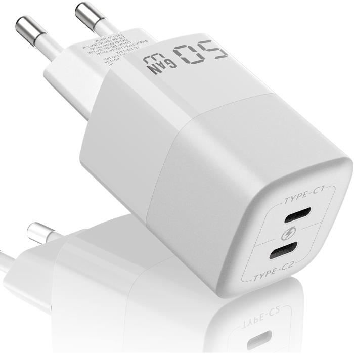 Chargeur USB C 67 W GaN Compact PD à 3 ports, bloc d'alimentation USB-C 67 W pour MacBook Pro/Air, Dell XPS, ordinateur portable, iPad Pro, Galaxy S24/S23, Note 20/10 , iPhone 16/15/14/13/12 Pro Max 【3 en 1 : Charge Express】Notre bloc chargeur USB C intègre 2 ports USB-C (PD3., 0) et 1 port USB-A (QC3., 0) pour s'adapter à divers besoins de charge. Chargeur Usb 70W USB C Chargeur Rapide, 3 Ports PD 3.0 GaN Adaptateur Type C Avec Chargeur Rapide USB-C PD 3.0 1 Chargeur MacBook PD 67W 2 Chargement intelligent 3 PPS Ultra Rapide Que vous ayez un iPhone 15/14 Pro Max/13/12, un iPad Pro/Air, un Galaxy S24/S24 Ultra/S23/S23 Ultra/S22/S21/Note 20/Note 20 Ultra, un Pixel 8/7/6/5/4a, une Switch, ou même des ordinateurs portables tels que MacBook Air/Pro, Dell, et HP – notre adaptateur secteur USB C vous offre une recharge fluide et sans tracas. 【Ce que vous obtiendrez】Prise secteur USB C 67 W *1, câble de chargement USB-C vers USB-C de 1., 2 meters *1, manuel d'utilisation *1, garantie de 18 mois et service client convivial 24 heures sur 24 ! Simultaneous Multi-Device Charging: Equipped with 2 USB-C and 1 USB-A ports, this charger allows you to fast-charge your laptop, tablet, and smartphone all at once. Output up to 67W for a single device ensures lightning-fast power when you need it most Chargeur Rapide PD Chargeur GaN 67W 3 Ports USB-C - Compact Et Il prend en charge divers protocoles de charge rapide, tels que PD3., 0, PPS 45 W, QC 3., 0/2., 0, Apple 2., 4A, AFC, FCP, etc. 【Technologie GaN III de Pointe】Le chargeur GaN rapide Type C GOLDNEXT 67 W exploite la technologie GaN de PI, procurant une alimentation compacte, moins chaude et incroyablement efficace. 【Vitesse Éclair de Chargement】Avec une puissance de sortie de 67 W sur un port unique (Type-C1 ou Type-C2), notre chargeur rapide USB C peut recharger votre MacBook Pro 13 de 0 % à 100 % en seulement 1,8 heures.