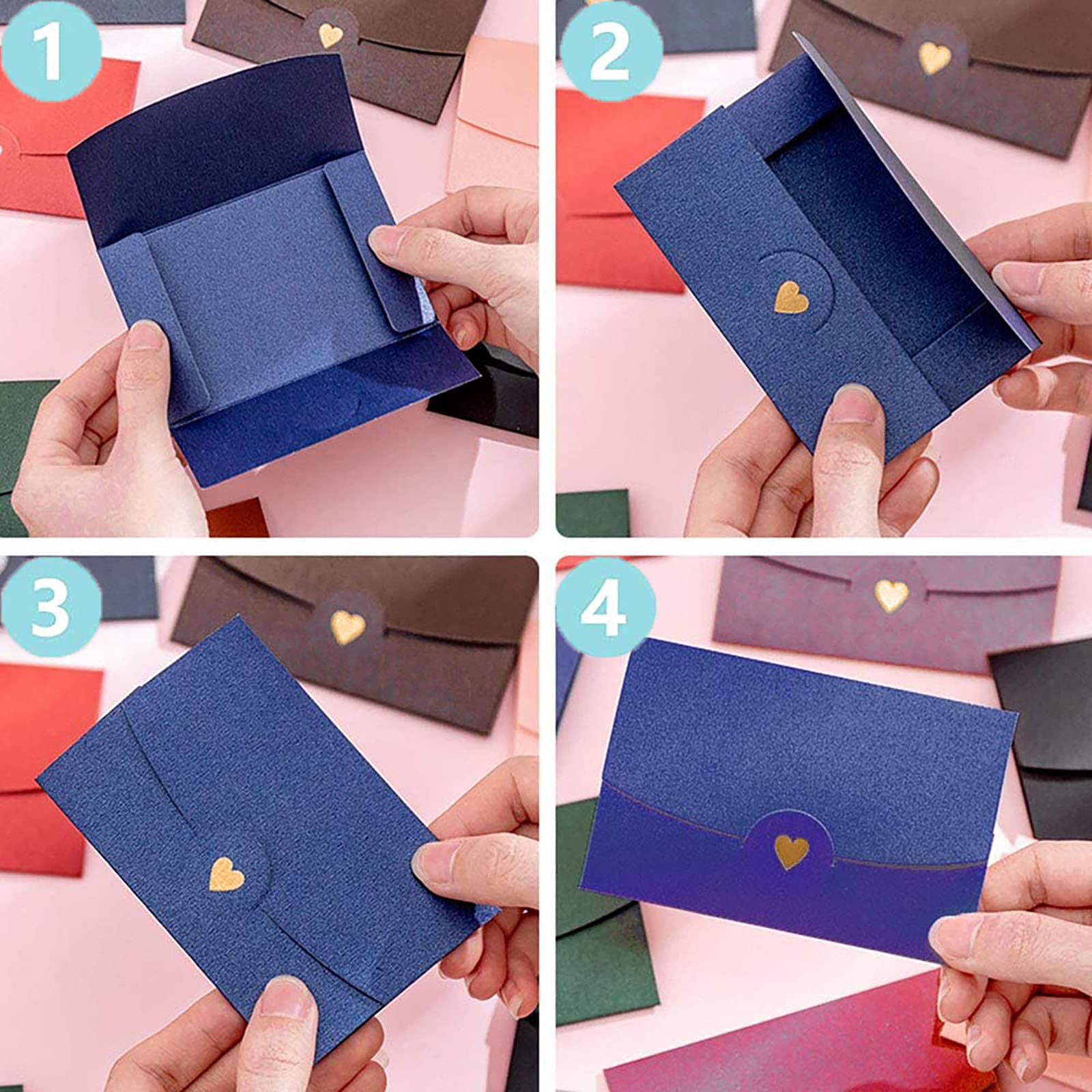 Ces enveloppes sont fabriquées en papier perlé solide, dur et solide, beau et épais, pour protéger vos cartes ou lettres de la déformation et plus encore 🌟 QUANTITÉ D'EMBALLAGE 🌟: Les enveloppes colorées comprennent 20 pièces, cinq couleurs, 4 pièces pour chaque couleur, plusieurs couleurs et la quantité peuvent répondre à vos différents besoins. Enveloppes Papier Nacré 20 Pièce Enveloppe De Papier Nacré, Enveloppe De Carte Postale,Creative Enveloppes Papier Nacré Coeur ✔ Ces enveloppes sont fabriquées en papier perlé solide, dur et solide, beau et épais, pour protéger vos cartes ou lettres de la déformation et plus encore. 🌟DIYABLE🌟: Les enveloppes de ces enveloppes sont vierges, vous pouvez dessiner n'importe quelle image ou écrire ce que vous voulez dire pour créer des cartes de vœux et des enveloppes avec votre propre style pour exprimer vos sentiments. 🌟LARGE GAMME🌟: Idéal pour les cartes-cadeaux personnalisées, les notes de remerciement, les invitations, les cartes de vœux, les cartes de Noël, et peut également contenir des chaînes de bijoux, des perles, des pendentifs, des pinces à cheveux, des trombones, des pièces de monnaie et d'autres bibelots. Fabriqué en papier de texture fine, lisse à écrire, durable et résistant aux déchirures, et pas facile à briser. Il est innovant et élégant, exquis et vintage, et décore un petit cœur doré, fait ressortir votre enveloppe et attire plus d'attention Petites enveloppes pour cartes de vœux, porte-cartes Personnalisez vos enveloppes avec du texte spécial dans différents styles. Les dimensions sont de 17,5 cm x 11 cm. ✔Vous pouvez souhaiter sur des mini petites enveloppes multicolores.