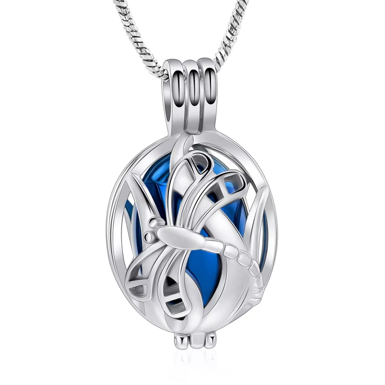Collier Pendentif Libellule Et Agate Bleue Avec Chaine En Acier Inox