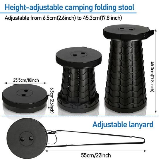 Que ce soit pour la randonnée, la plage, le barbecue ou le jardin, le tabouret de camping est toujours la solution d'assise parfaite. Le tabouret de camping pliable est portable et simple à assembler, il est adapté pour le camping, la pêche, les voyages et la chasse. Également un bon choix pour l'utiliser pour se reposer dans le jardin lorsque vous avez un pique-nique ou d'autres activités de plein air Caractéristiques du tabouret de camping : Nom du produit : tabouret pliant pliable Matériau : acier et tissu Oxford Dimensions : 28 x 24 x 28 cm., Couleur : noir. Confortable et ergonomique : le tabouret pliant offre une assise confortable avec des coutures renforcées pour plus de soutien. Polyvalent : que ce soit pour la pêche, la randonnée, le pique-nique ou dans le jardin, le tabouret pliable est idéal pour toute activité de plein air. Le tissu Oxford respirant assure un grand confort d'assise, peu importe où vous l'utilisez, que ce soit au bureau, à la piscine ou au camping. Le tabouret pliant est respirant, durable et supporte jusqu'à 130 kg. Révéler-chaise de camping chaises pliantes de pêche portables chaise Se range facilement dans votre voiture, sac à dos ou sac. Contenu de la livraison : Lot de 2 tabourets pliants. Pliable et compact : grâce à son design astucieux, le tabouret pliant se plie et se replie en quelques secondes. Vous pouvez mettre le tabouret pliant camping dans votre sac ou dans le coffre de votre voiturelorsque vous voyagez, faites de la randonnée ou du vélo.[Meilleur Cadeau]: Tabouret Pliant Portable est réglable en hauteur (hauteur maximale: 45cm, hauteur minimale: 7cm), léger et rétractable, très pratique Tabouret Portable Pêche Randonnée GYMAX Lot De 2 Tabourets Pliants, Trépieds Portables Légers Avec Bandoulière, Chaise De Chasse En Plein Air, Chaise Aveugle Pour La Pêche, Le Camping Tabouret Camping Leroy Merlin Parfait pour les activités de plein air comme le camping ou la pêche.
